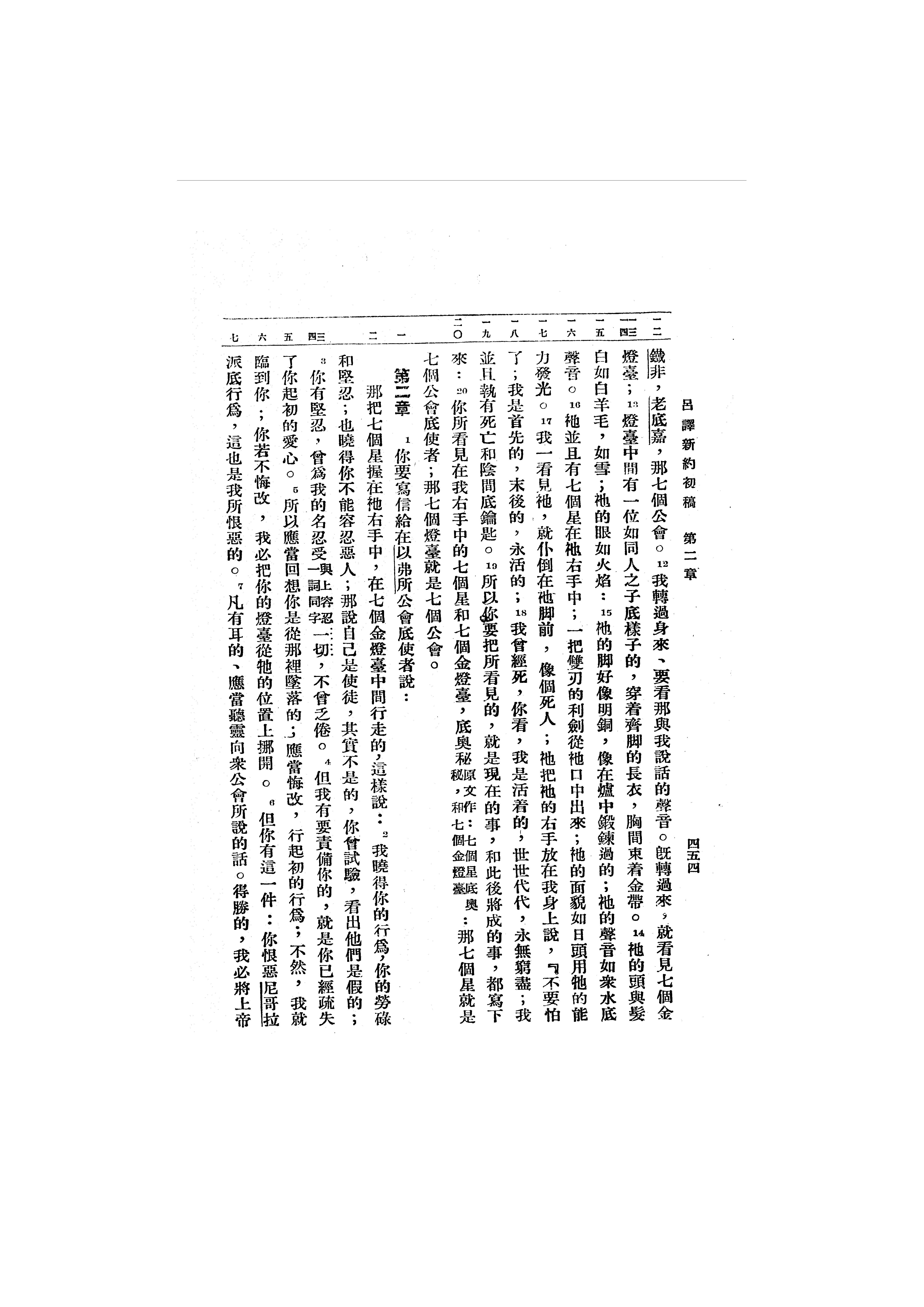 1946年吕振中译新约初稿 启示录 1 章 12 节到 2 章 7 节