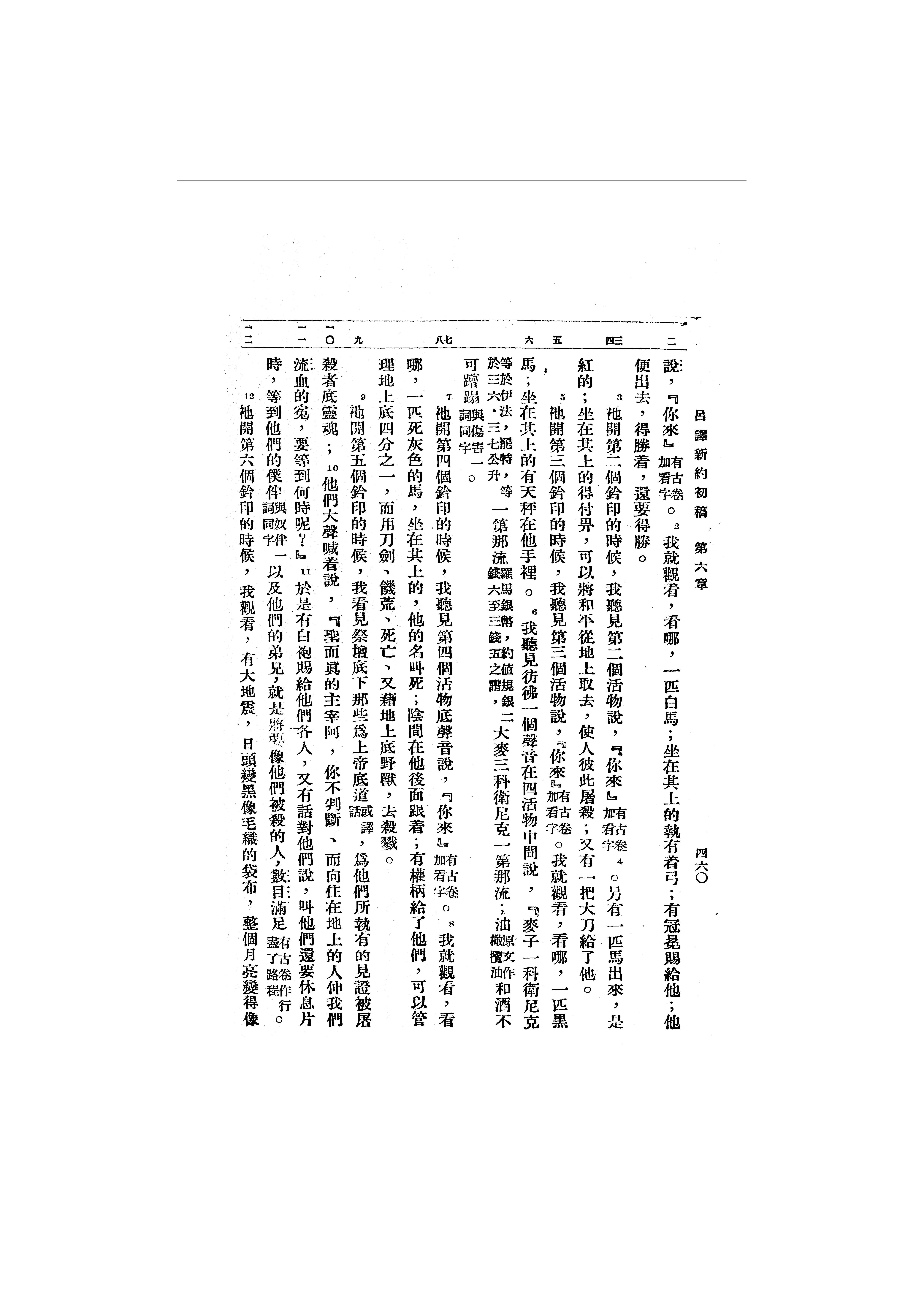 1946年吕振中译新约初稿 启示录 6 章 2 节到 6 章 12 节