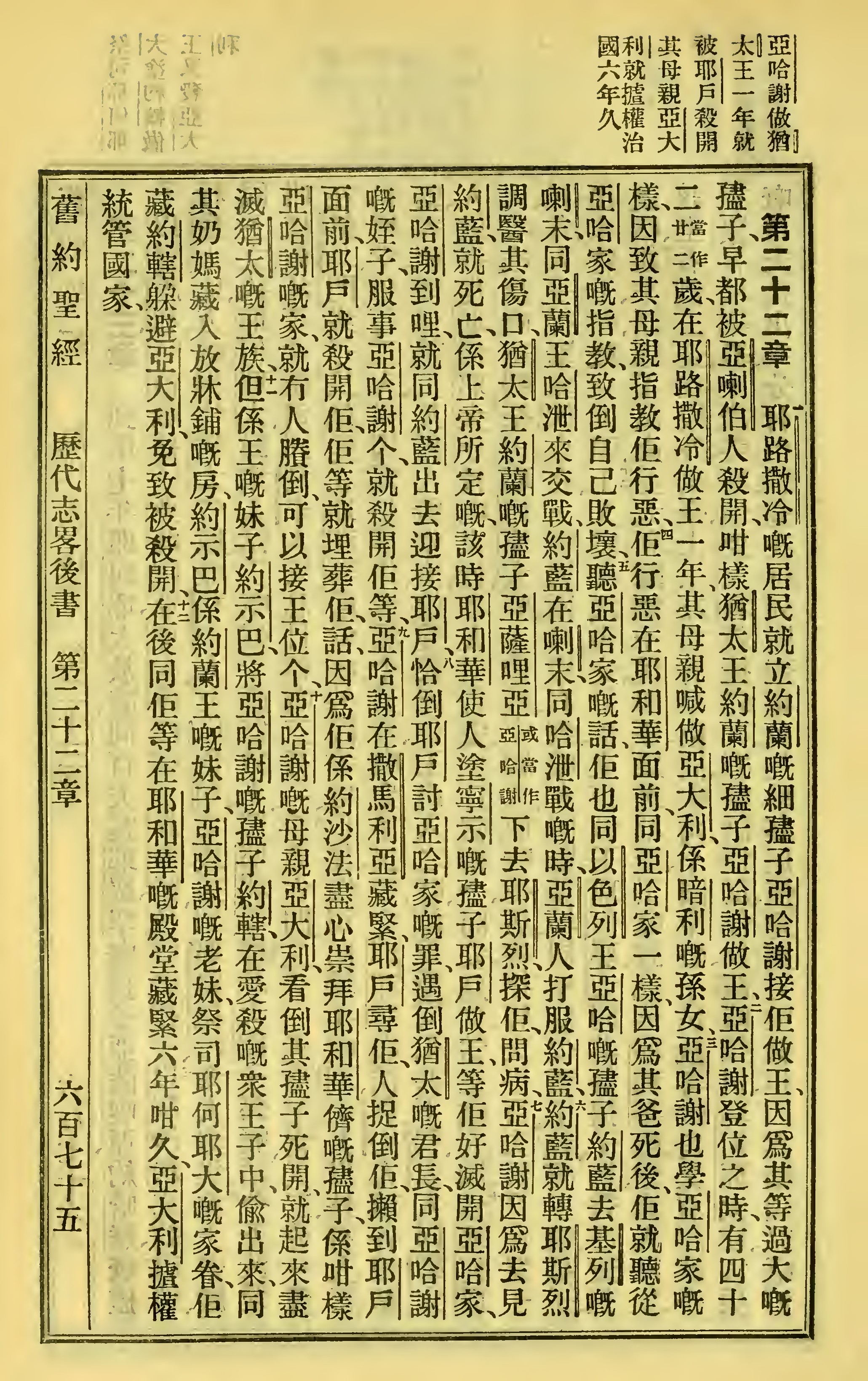 1923年圣经全书 历代志下 22 章 1 节到 22 章 12 节