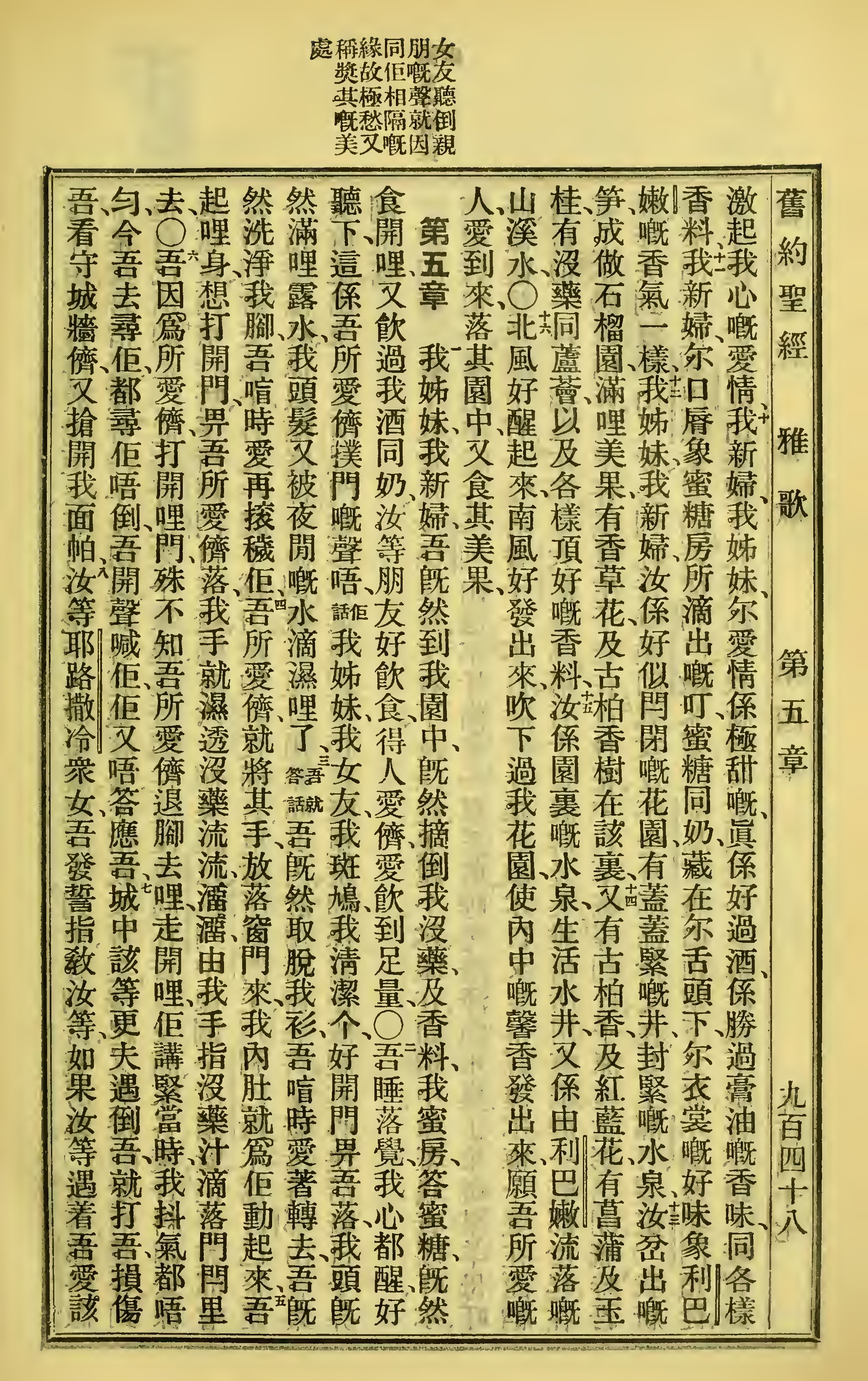1923年圣经全书 雅歌 4 章 10 节到 5 章 8 节