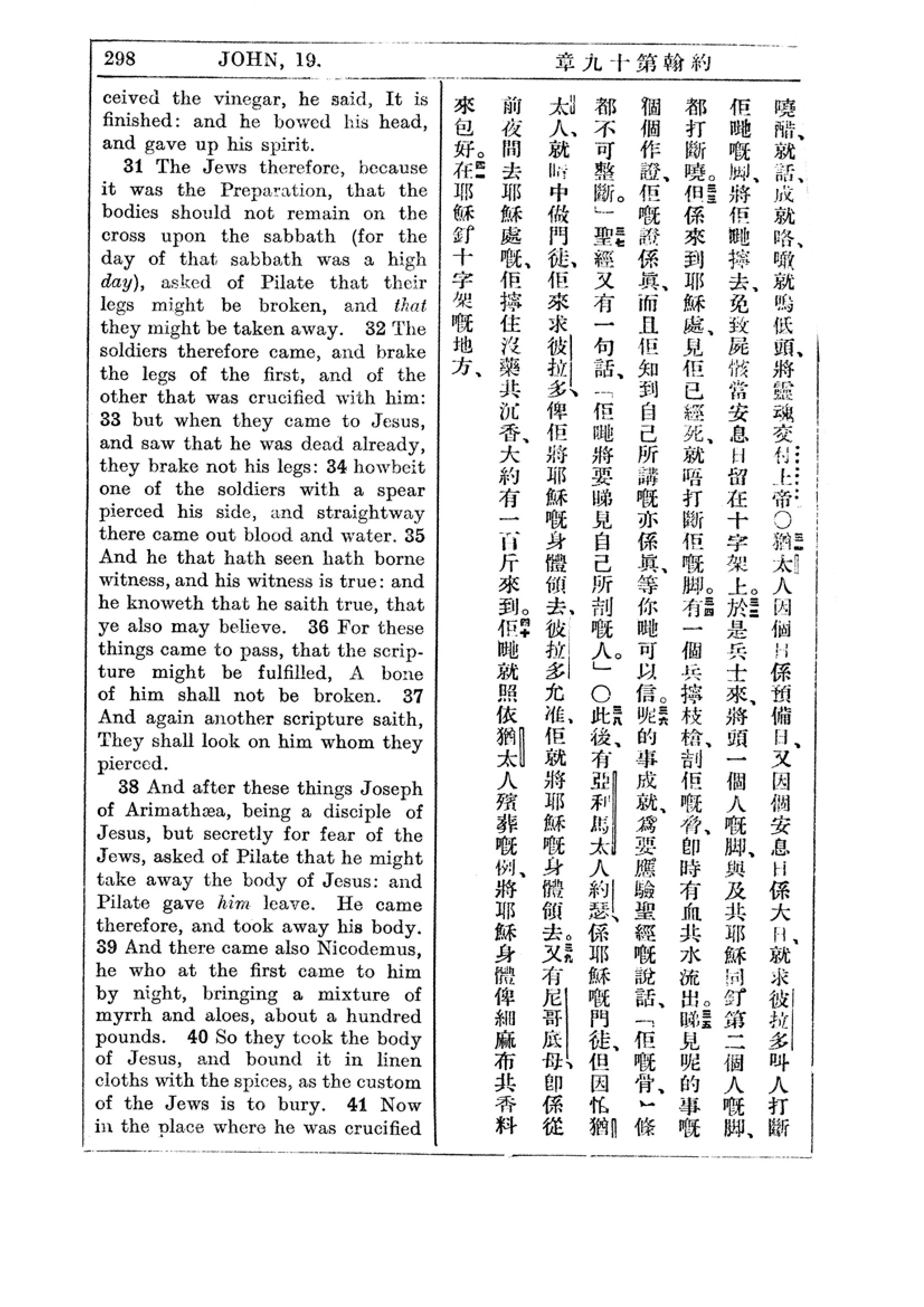 1927年新约全书(中英对照) 约翰福音 19 章 30 节到 19 章 41 节