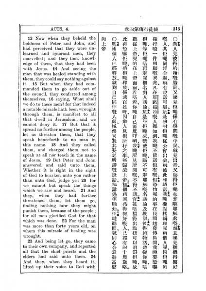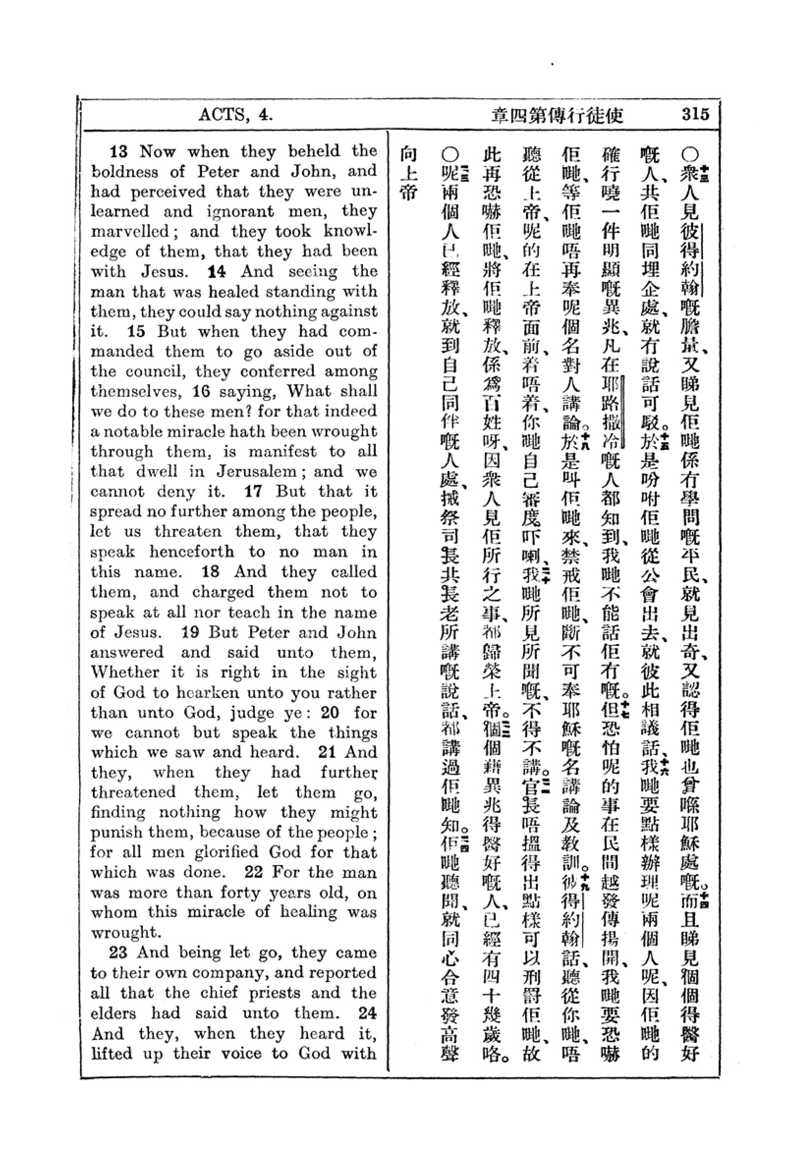 1927年新约全书(中英对照) 使徒行传 4 章 13 节到 4 章 24 节