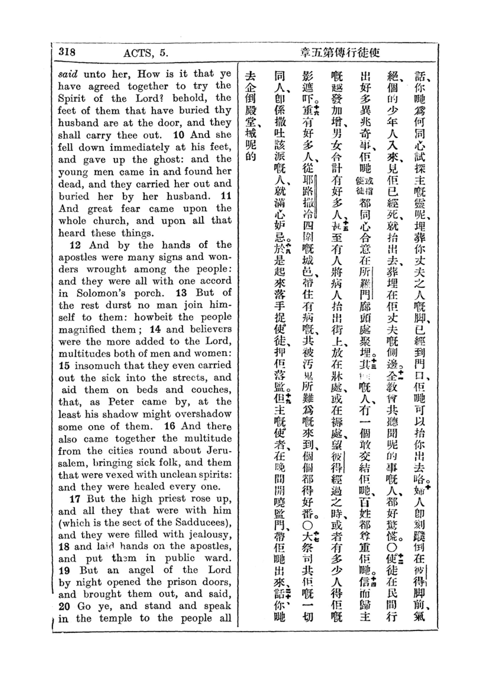1927年新约全书(中英对照) 使徒行传 5 章 9 节到 5 章 20 节