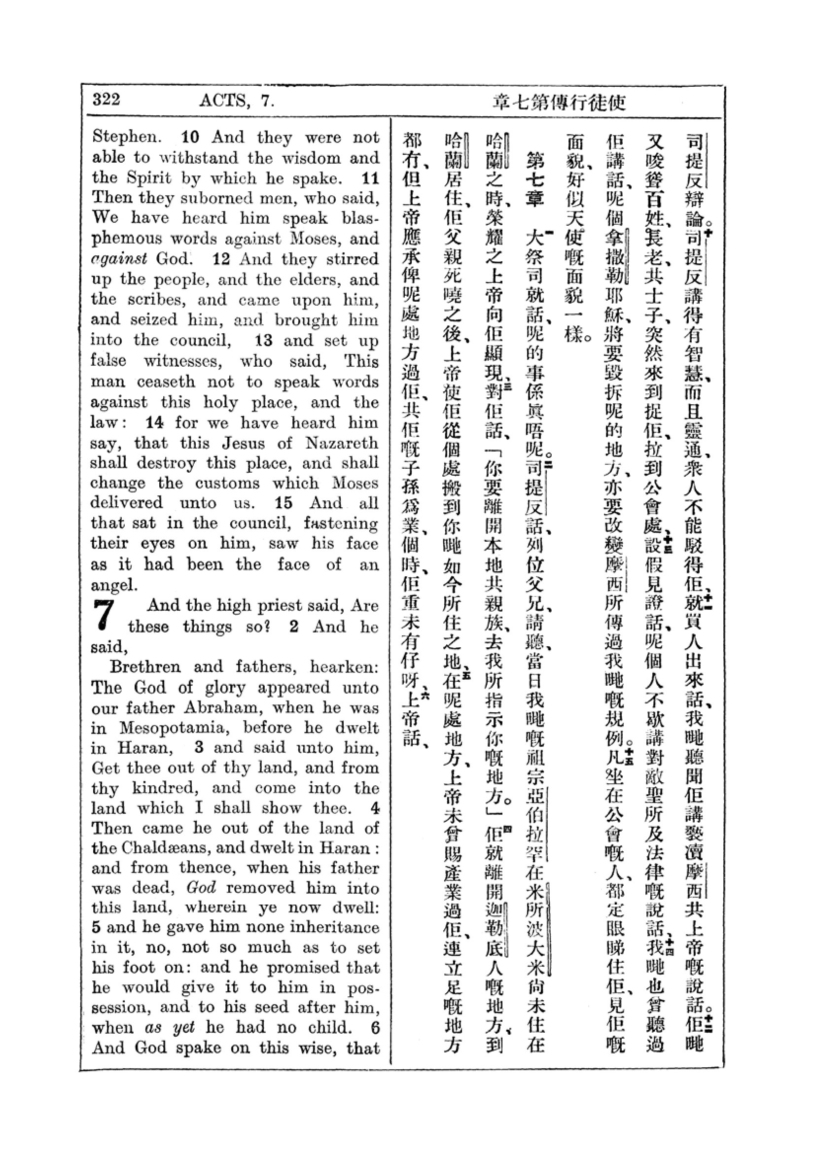 1927年新约全书(中英对照) 使徒行传 6 章 10 节到 7 章 5 节