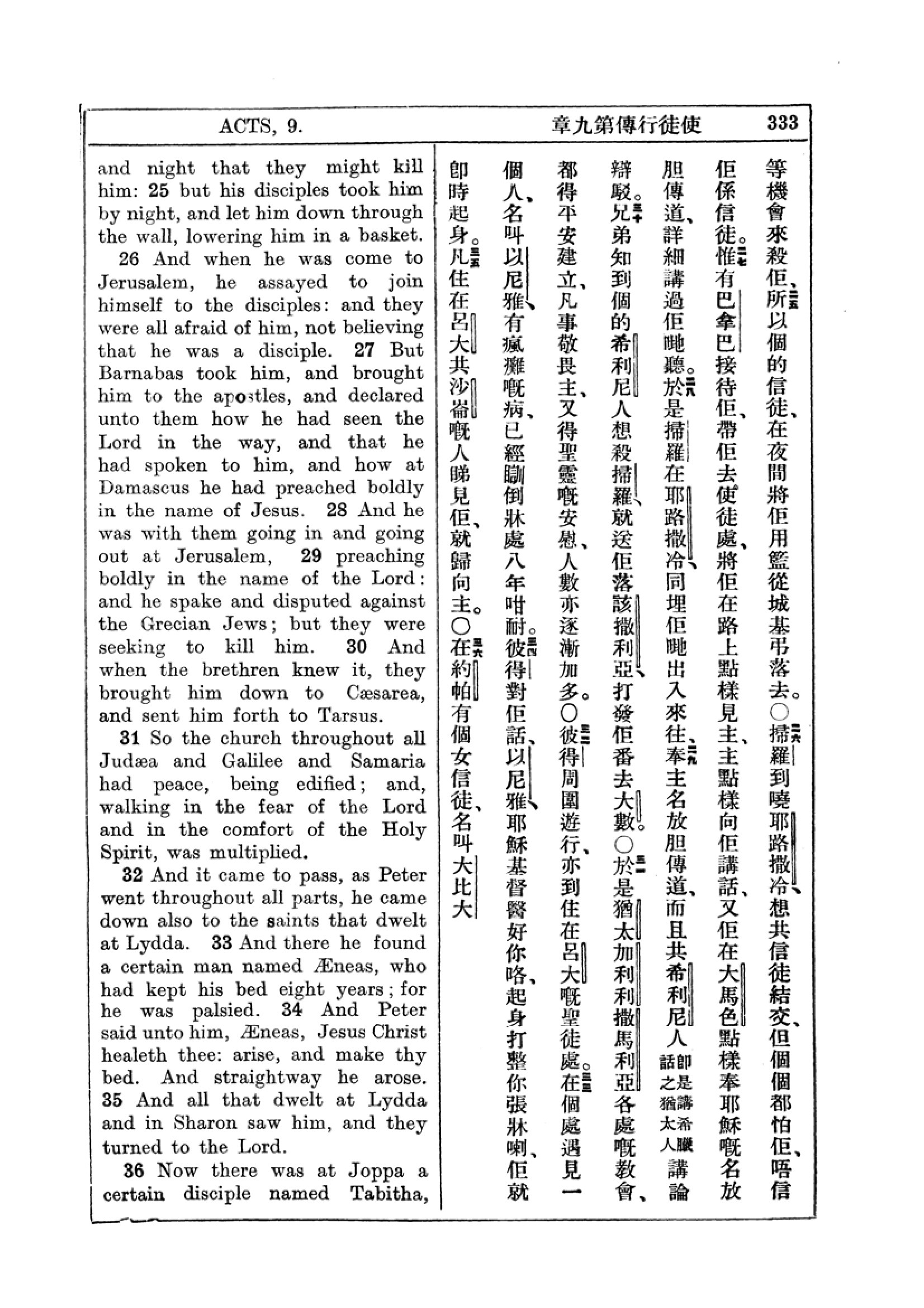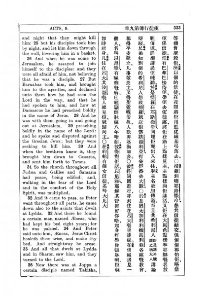 1927年新约全书(中英对照) 使徒行传 9 章 25 节到 9 章 36 节