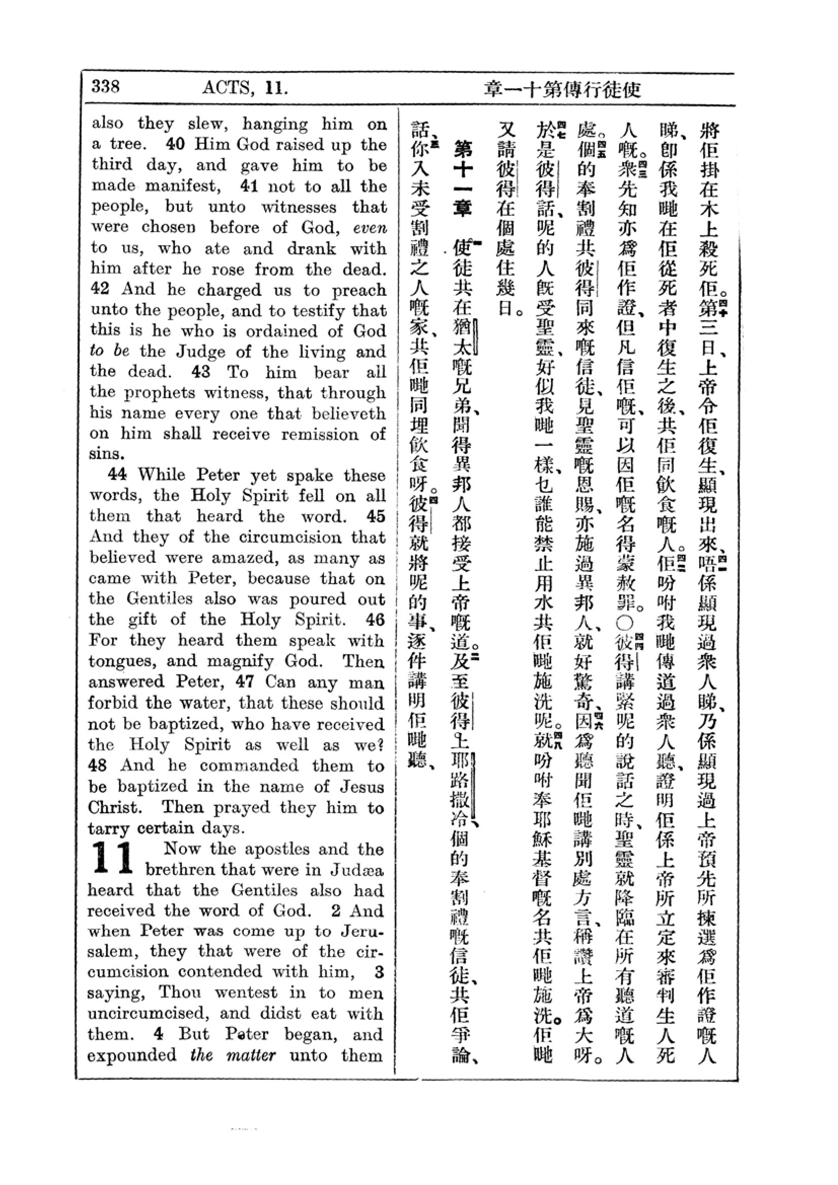 1927年新约全书(中英对照) 使徒行传 10 章 40 节到 11 章 4 节
