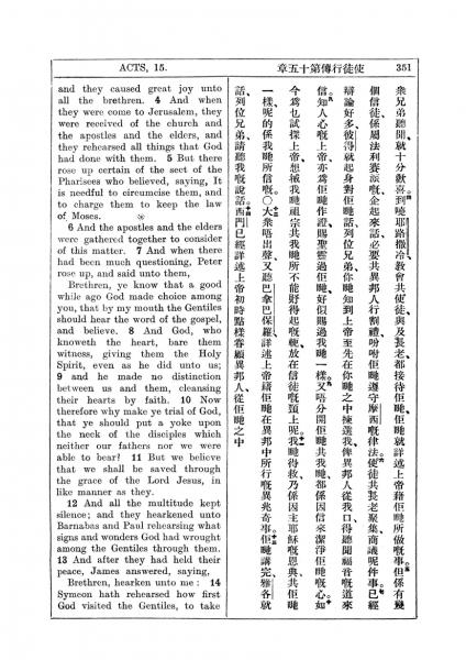 1927年新约全书(中英对照) 使徒行传 15 章 4 节到 15 章 14 节