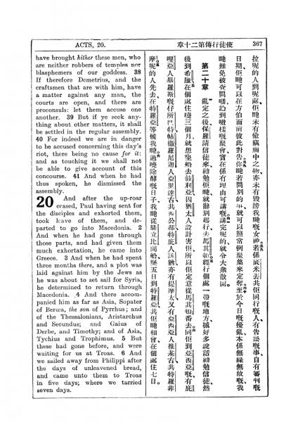 1927年新约全书(中英对照) 使徒行传 19 章 37 节到 20 章 6 节