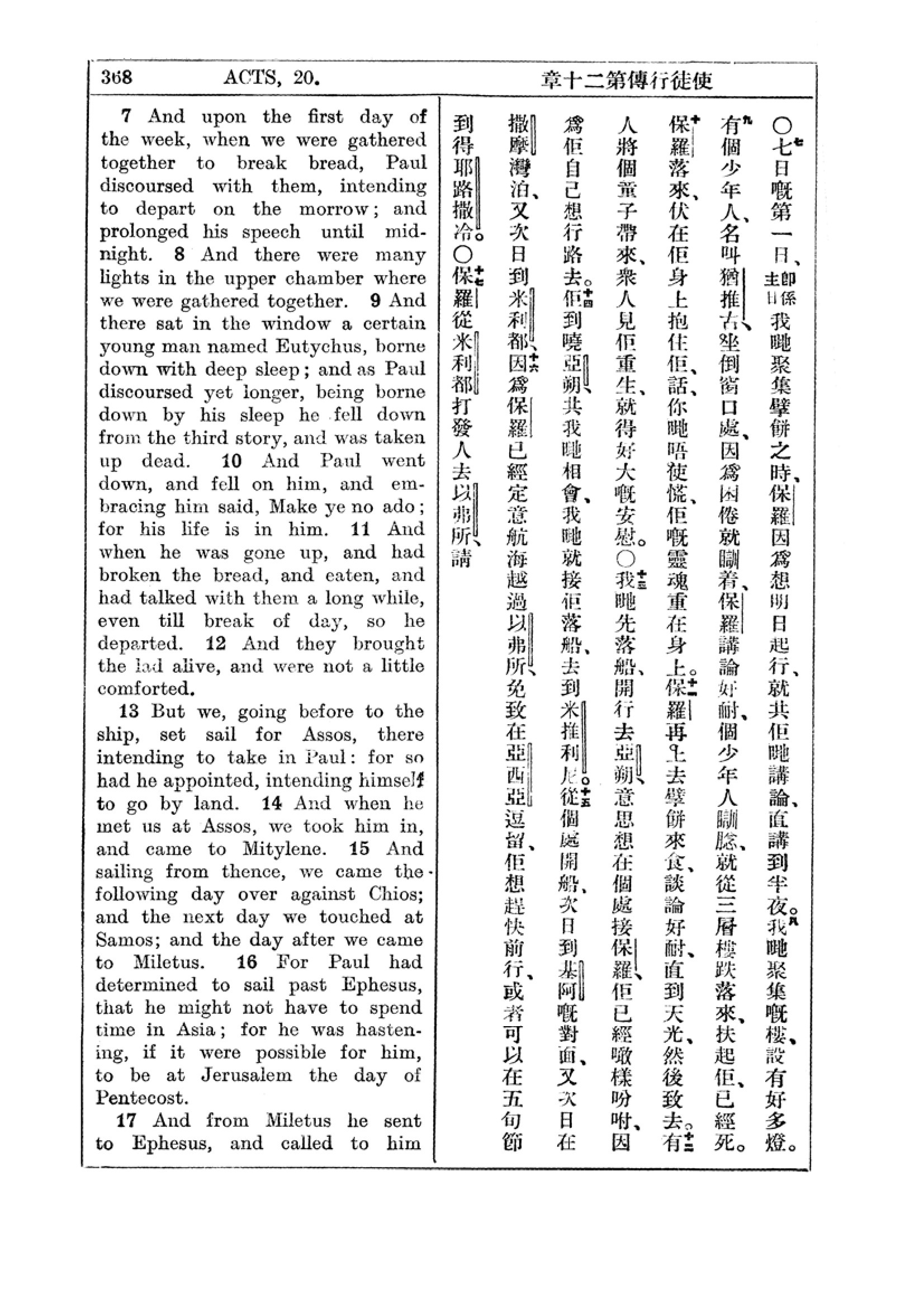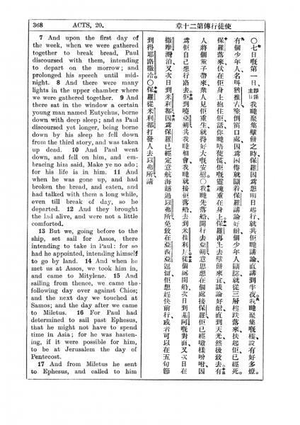 1927年新约全书(中英对照) 使徒行传 20 章 7 节到 20 章 17 节