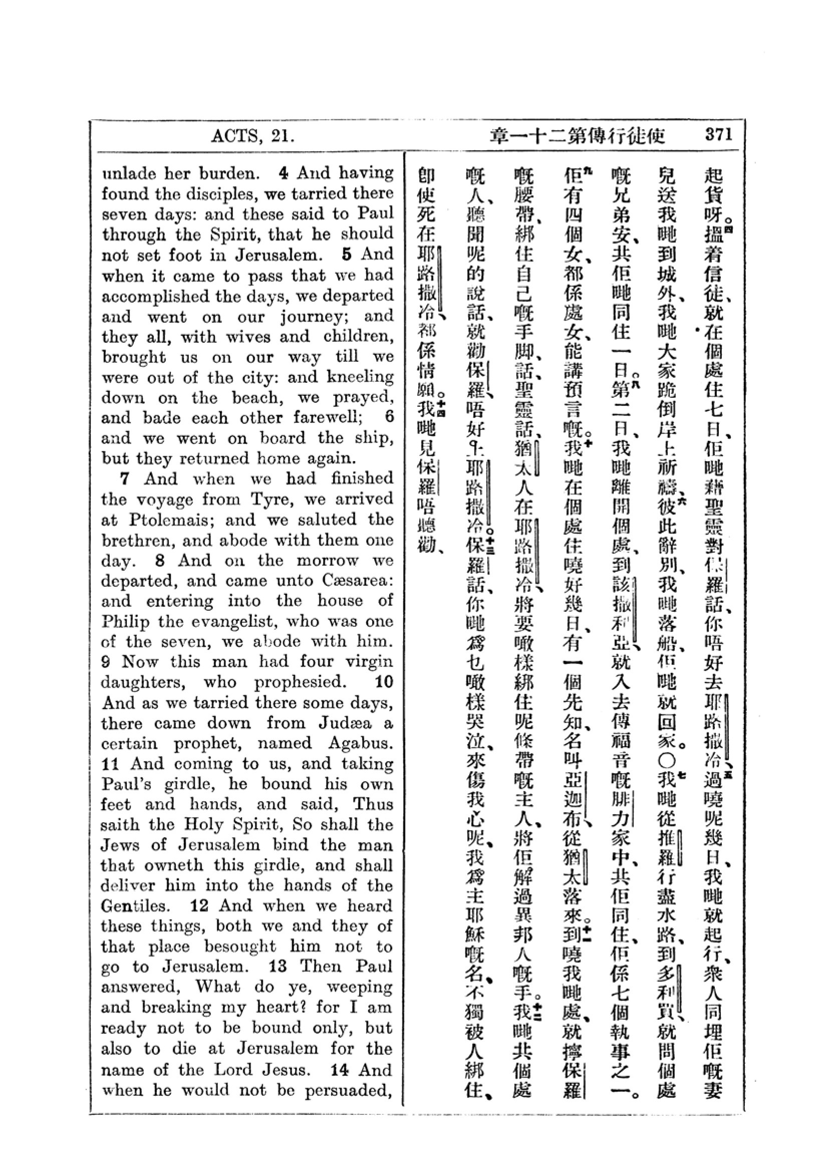 1927年新约全书(中英对照) 使徒行传 21 章 4 节到 21 章 14 节