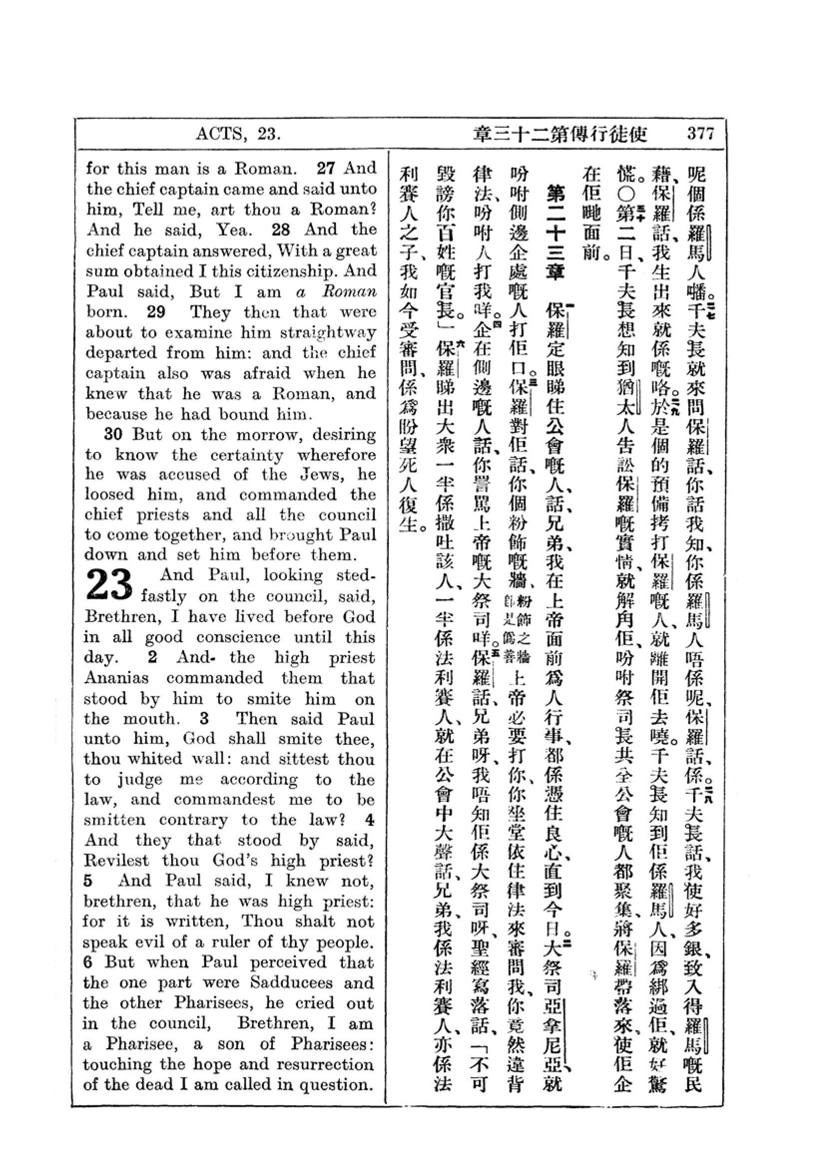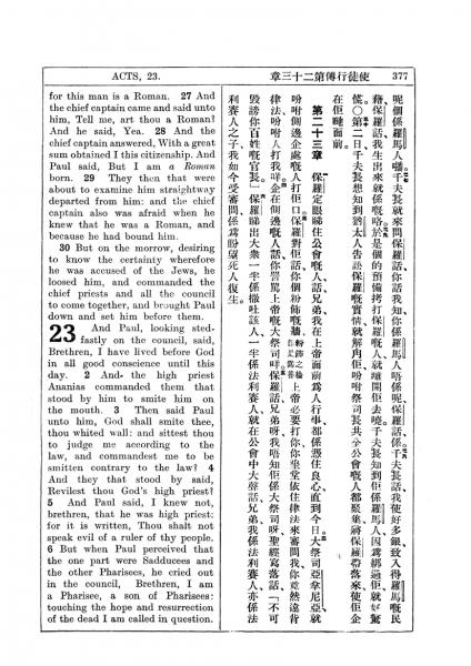 1927年新约全书(中英对照) 使徒行传 22 章 27 节到 23 章 6 节
