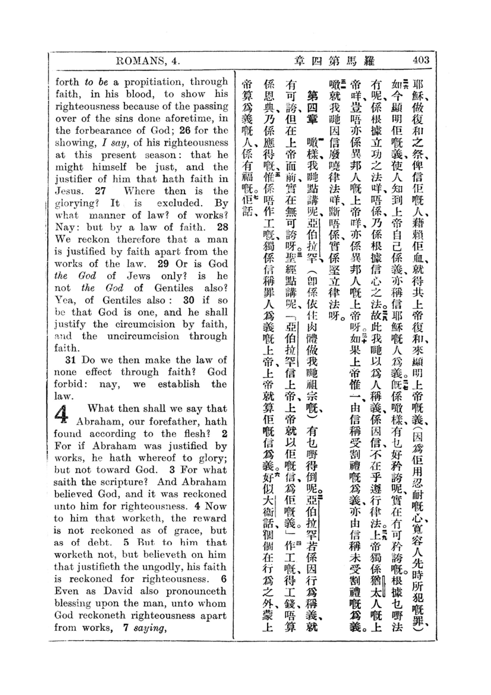 1927年新约全书(中英对照) 罗马书 3 章 25 节到 4 章 6 节