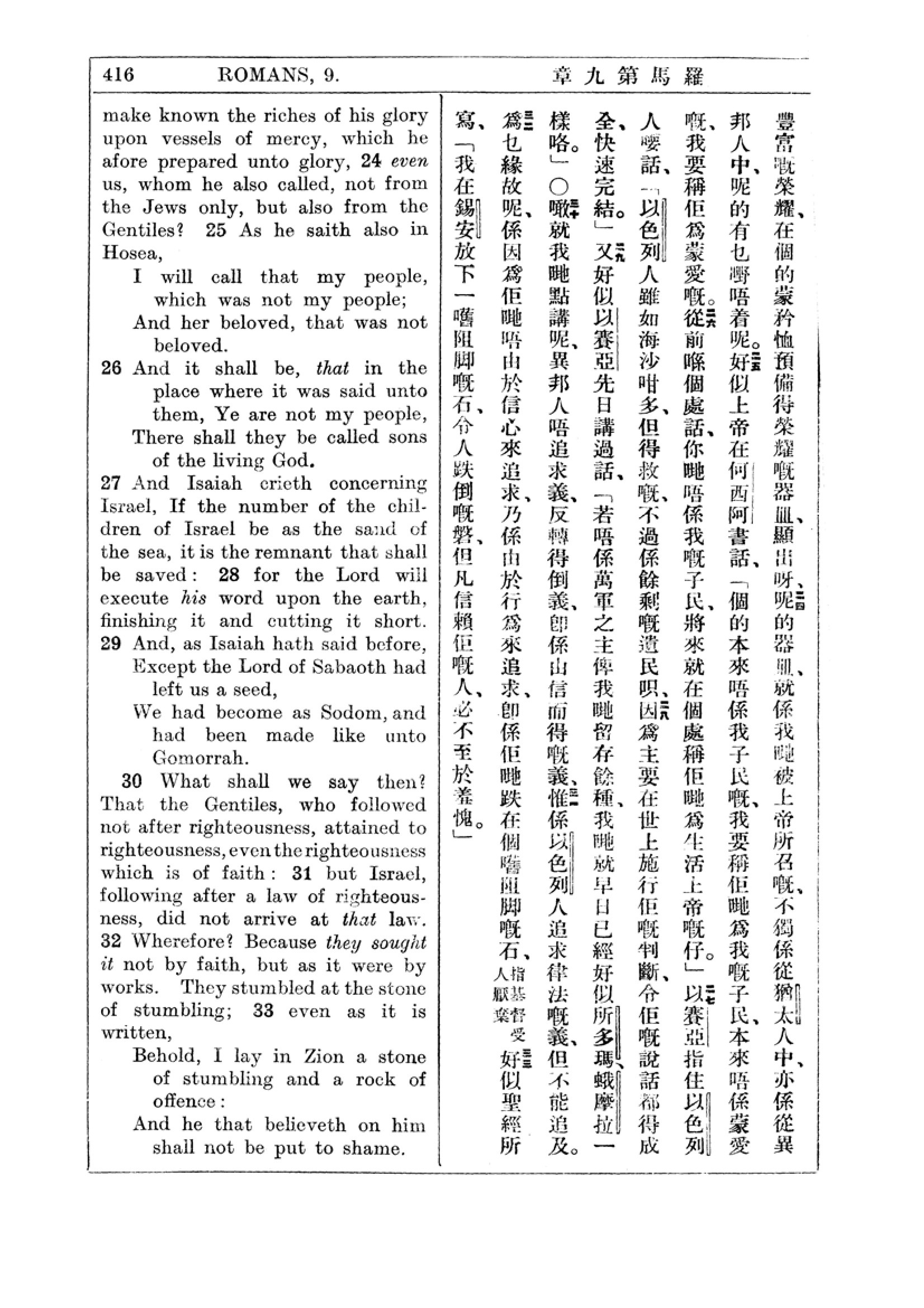 1927年新约全书(中英对照) 罗马书 9 章 23 节到 9 章 33 节