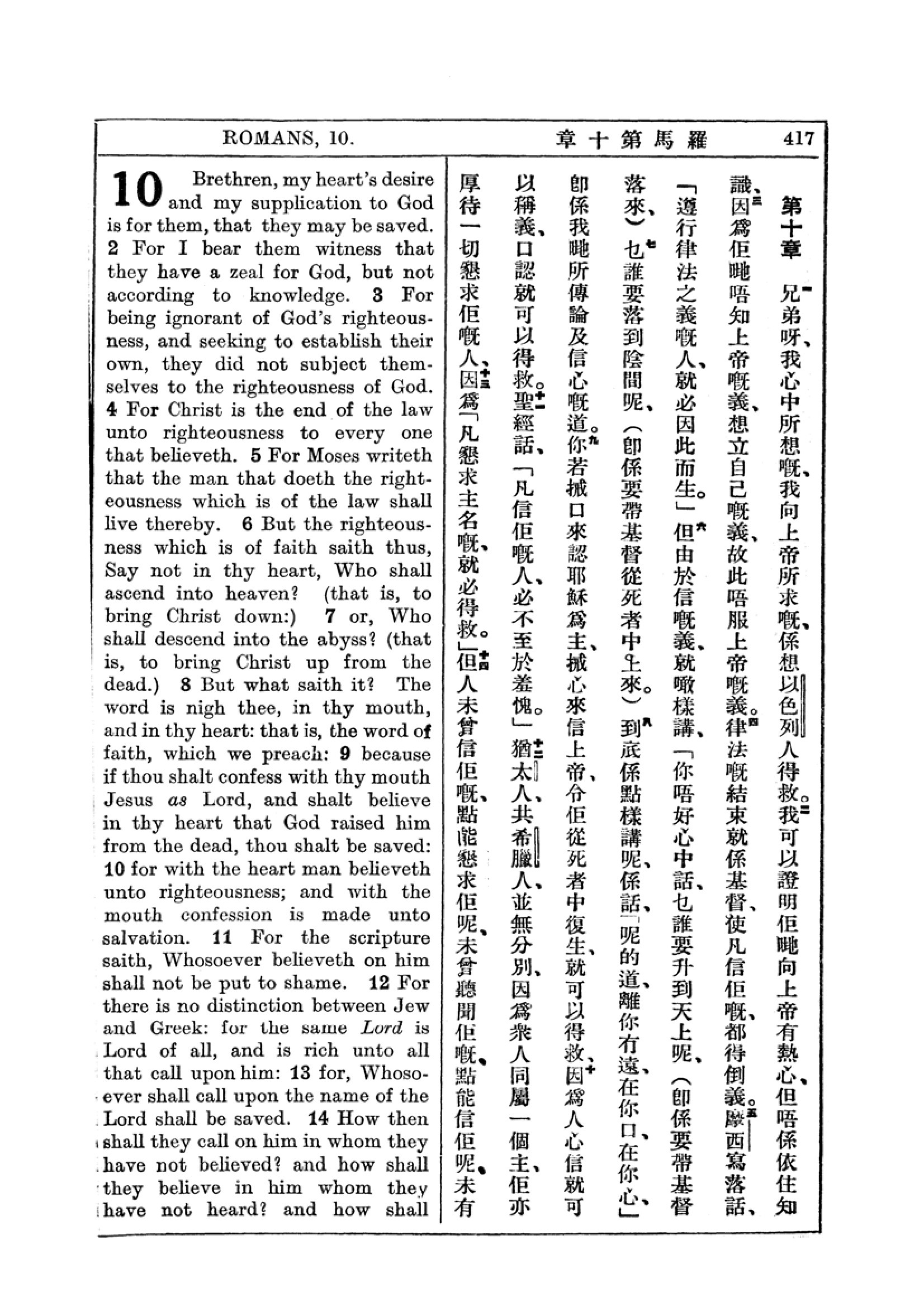 1927年新约全书(中英对照) 罗马书 10 章 1 节到 10 章 14 节