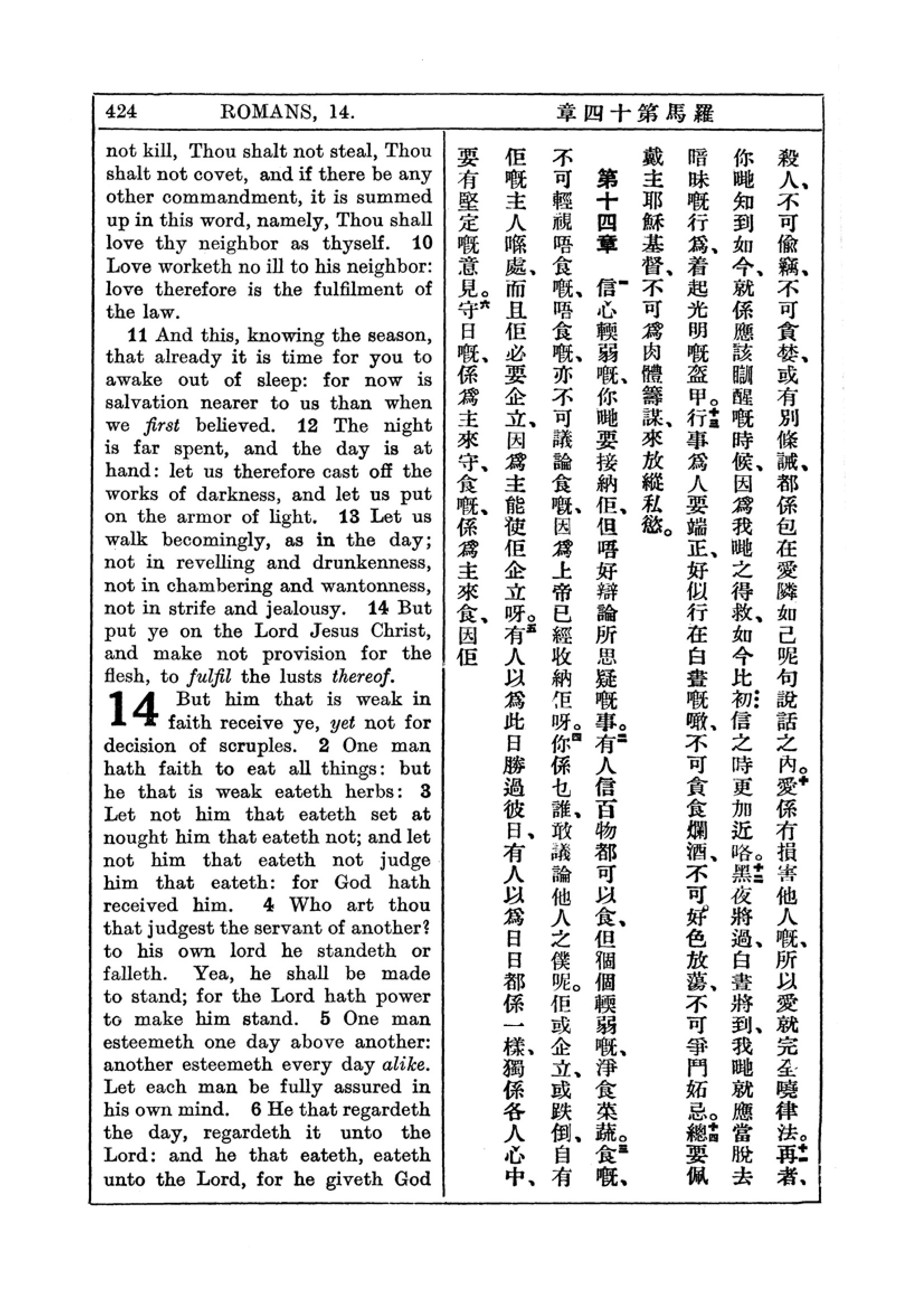 1927年新约全书(中英对照) 罗马书 13 章 10 节到 14 章 6 节