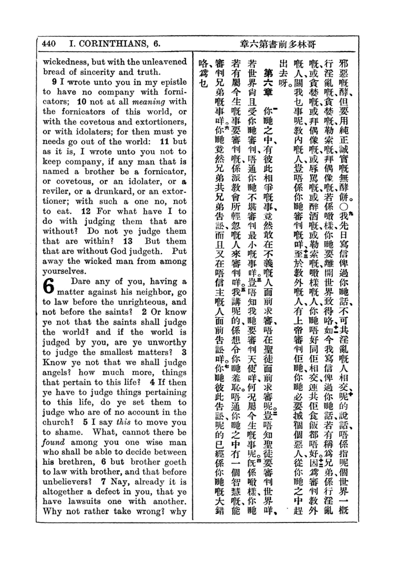 1927年新约全书(中英对照) 哥林多前书 5 章 9 节到 6 章 7 节