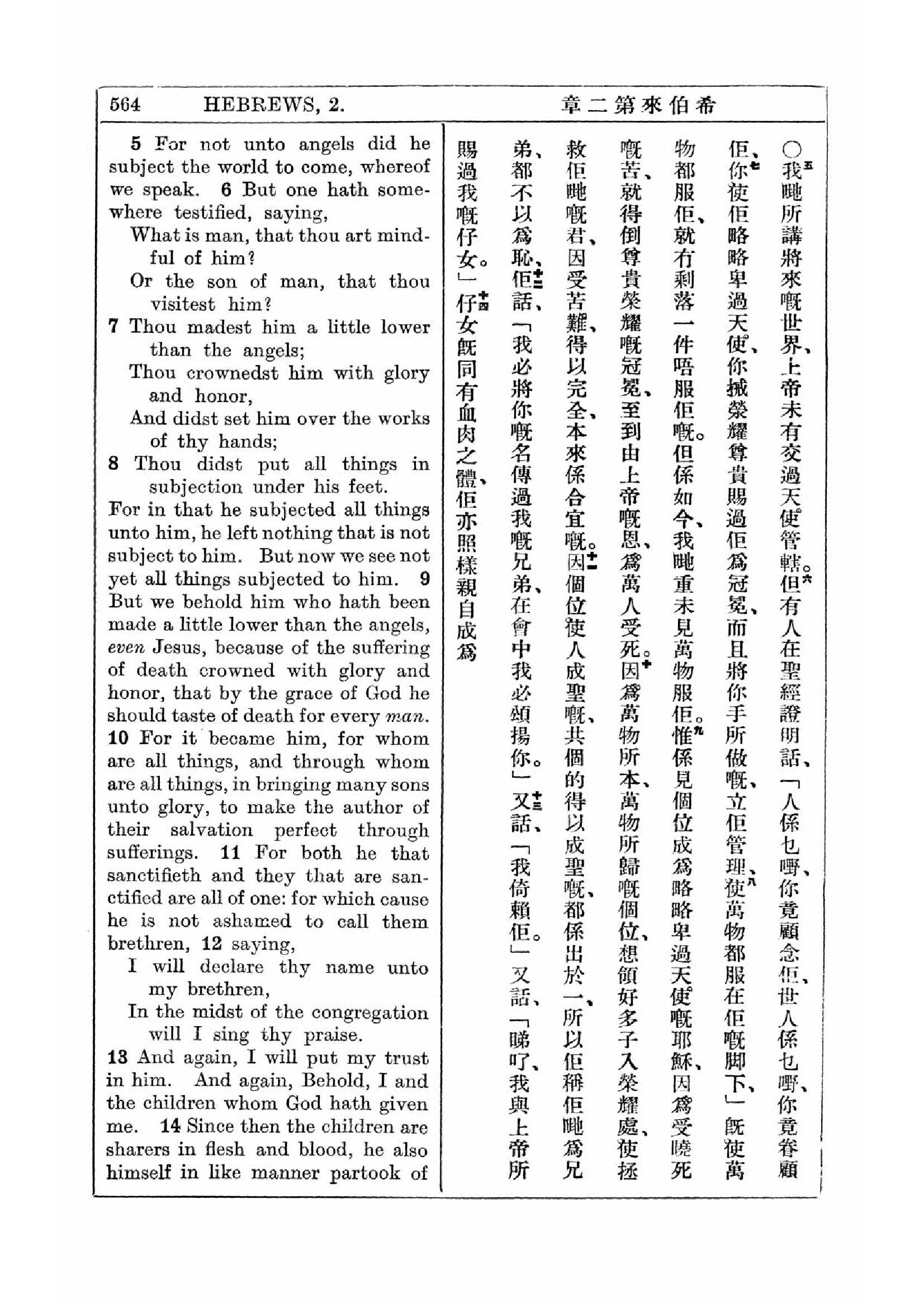 1927年新约全书(中英对照) 希伯来书 2 章 5 节到 2 章 14 节