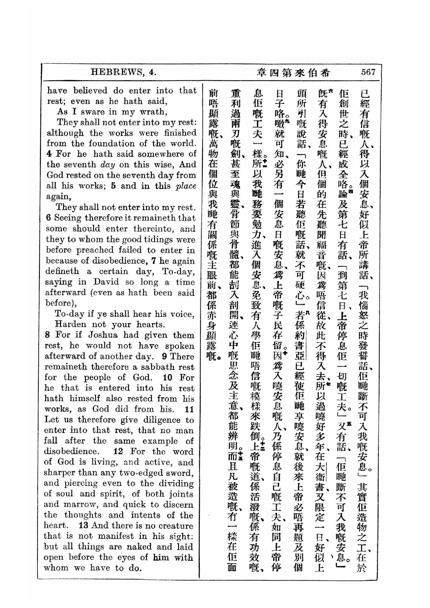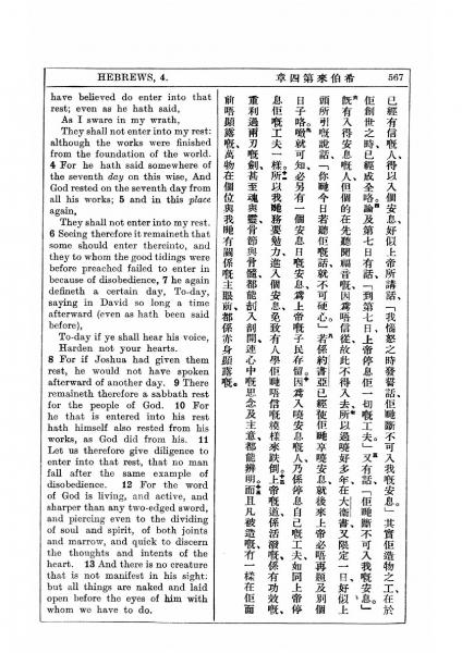 1927年新约全书(中英对照) 希伯来书 4 章 3 节到 4 章 13 节