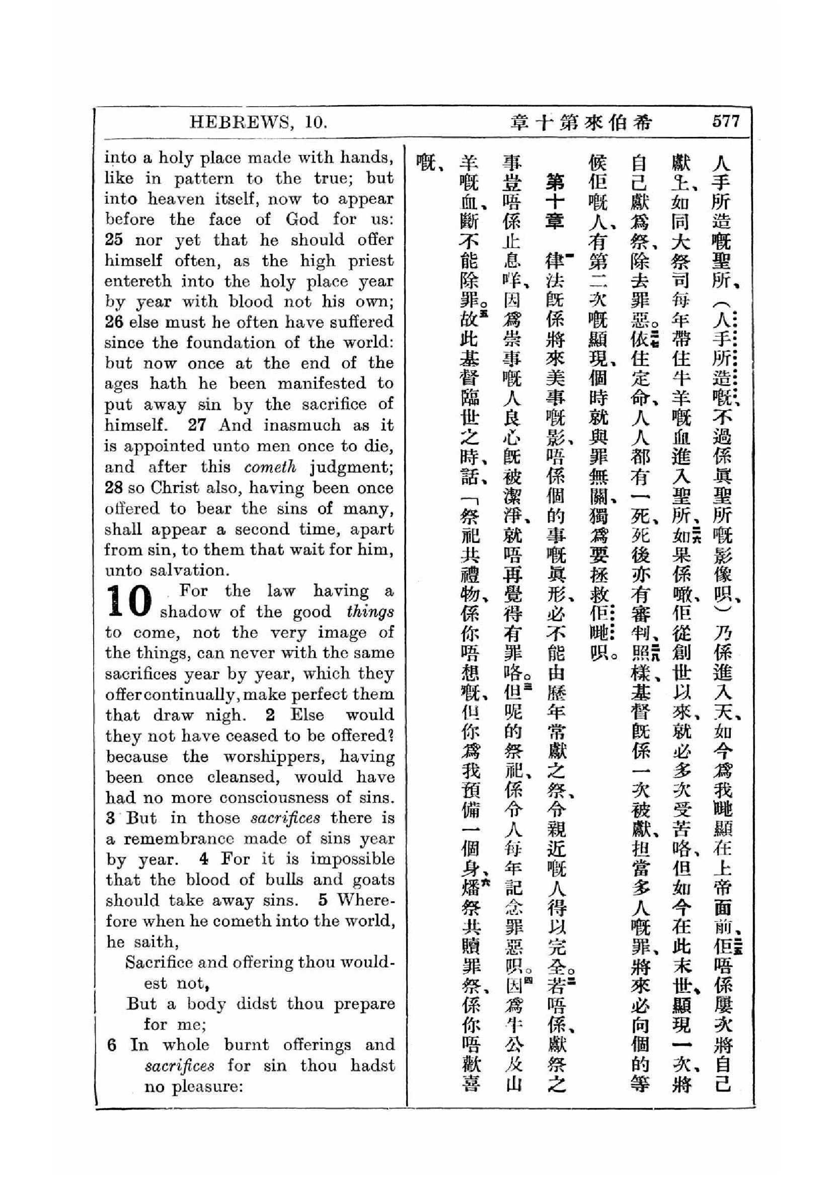 1927年新约全书(中英对照) 希伯来书 9 章 24 节到 10 章 6 节