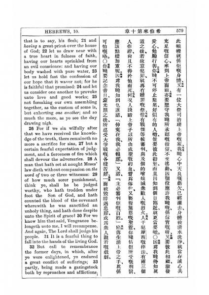 1927年新约全书(中英对照) 希伯来书 10 章 21 节到 10 章 33 节