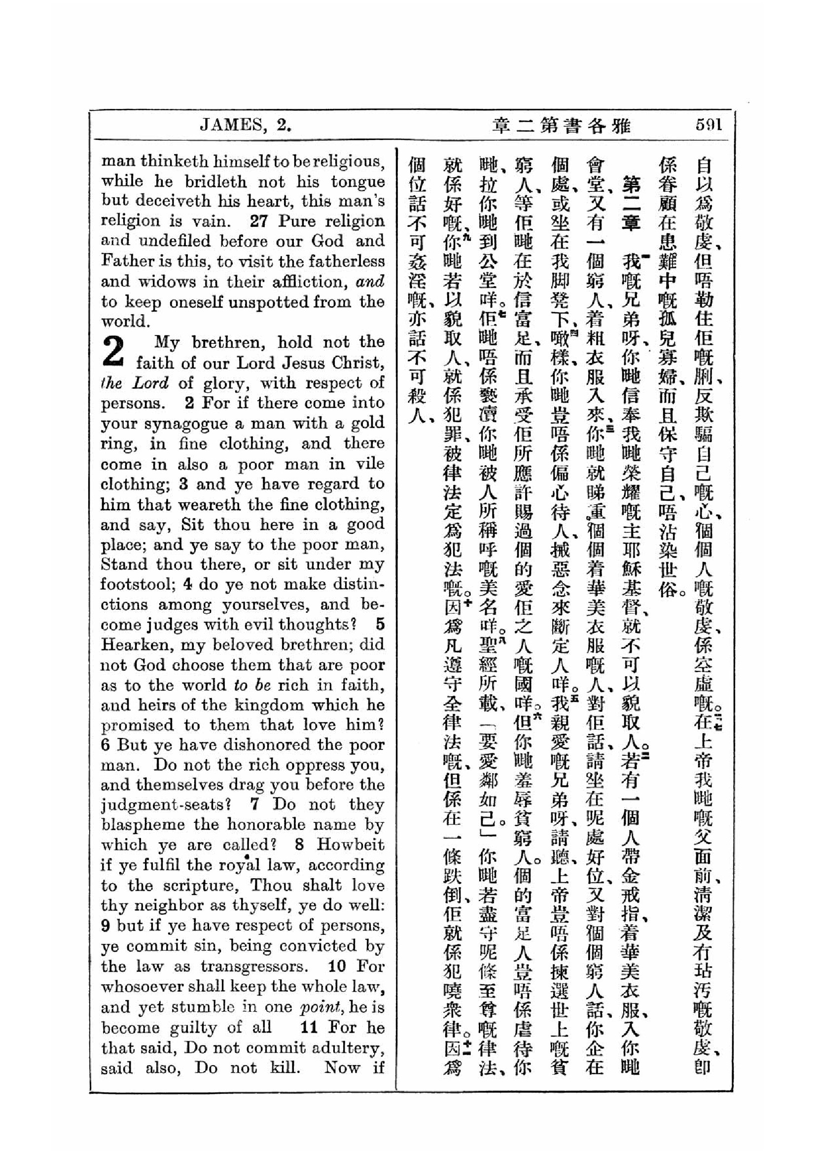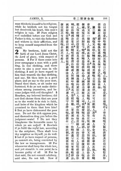1927年新约全书(中英对照) 雅各书 1 章 26 节到 2 章 11 节