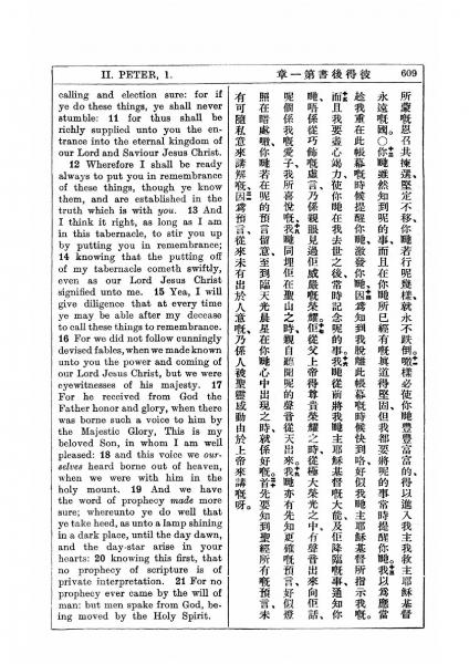 1927年新约全书(中英对照) 彼得后书 1 章 11 节到 1 章 21 节
