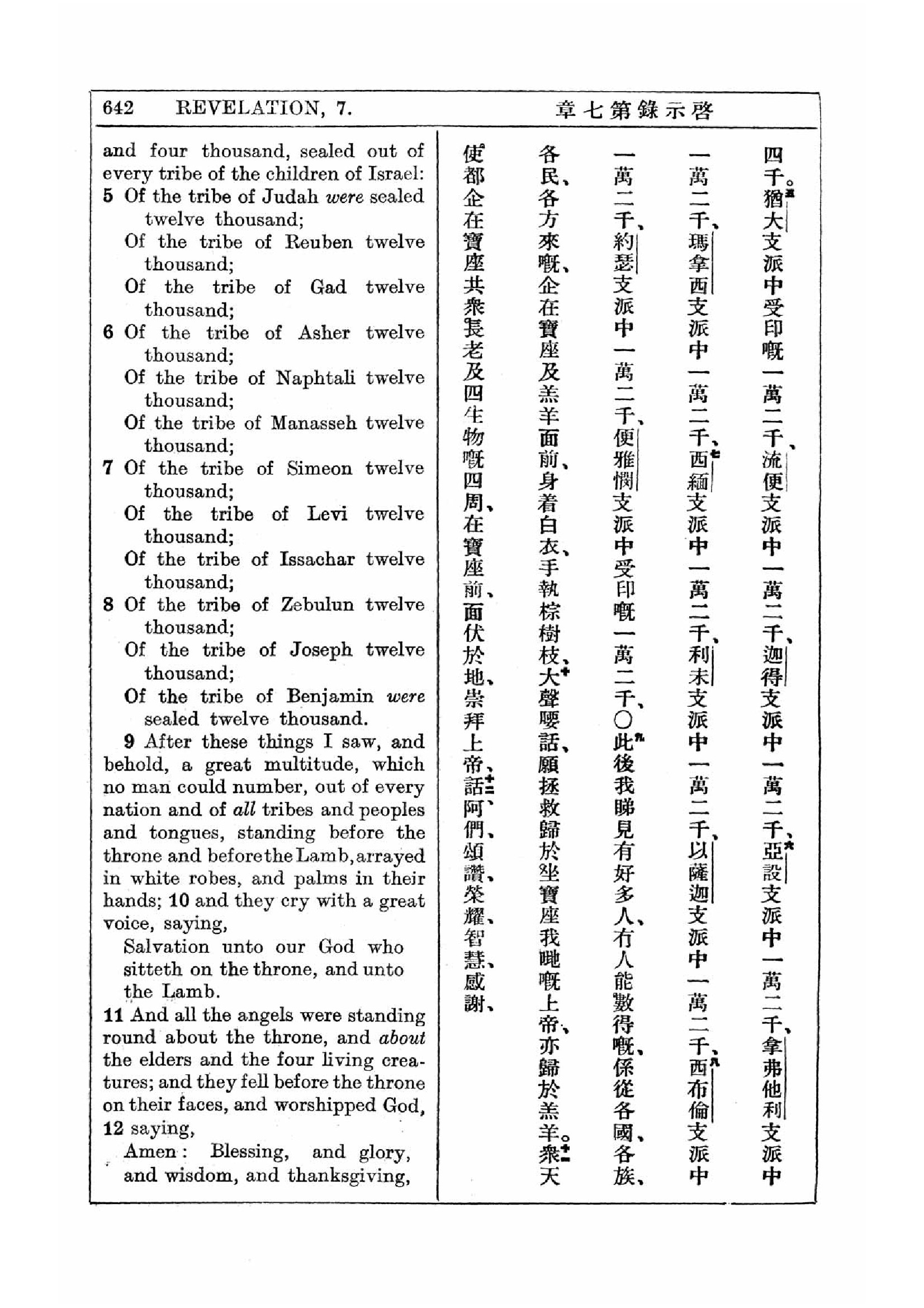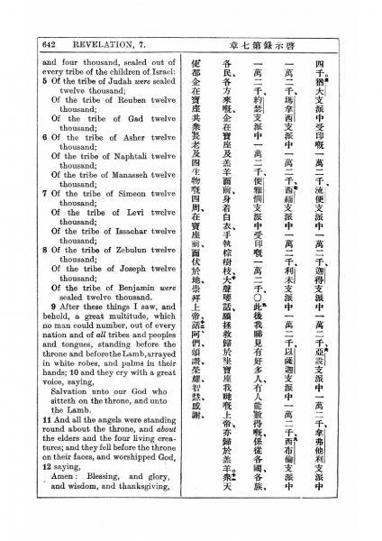1927年新约全书(中英对照) 启示录 7 章 5 节到 7 章 12 节