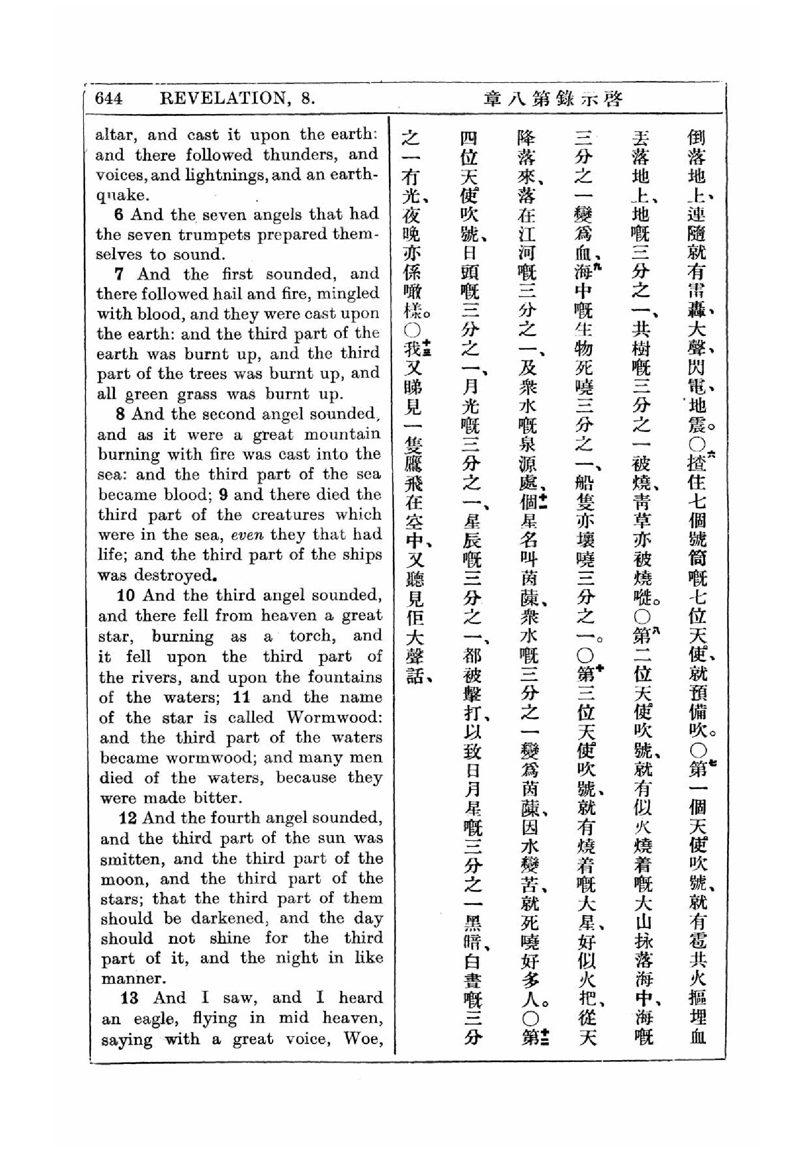 1927年新约全书(中英对照) 启示录 8 章 6 节到 8 章 13 节