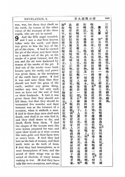 1927年新约全书(中英对照) 启示录 9 章 1 节到 9 章 10 节