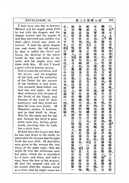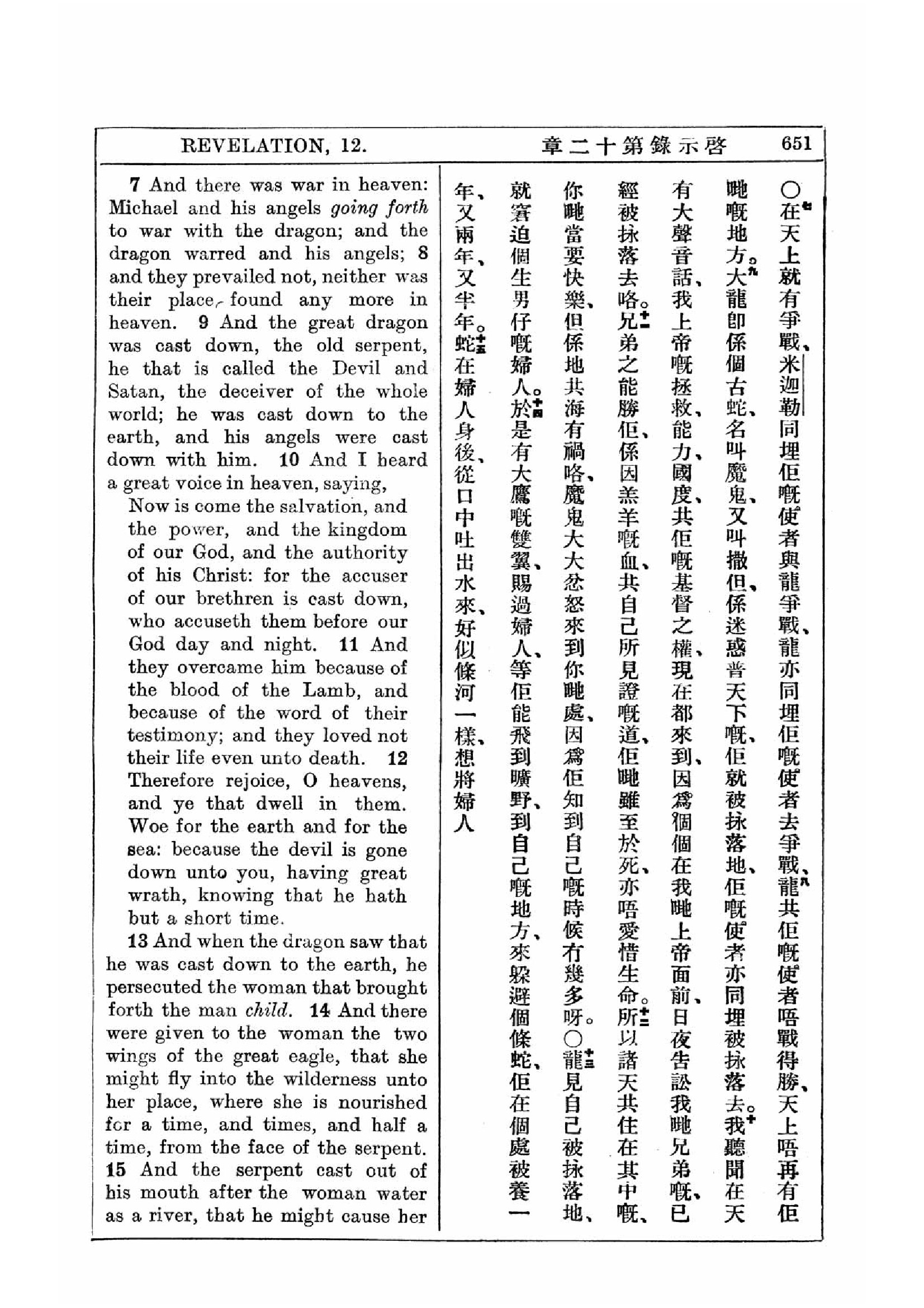 1927年新约全书(中英对照) 启示录 12 章 7 节到 12 章 15 节