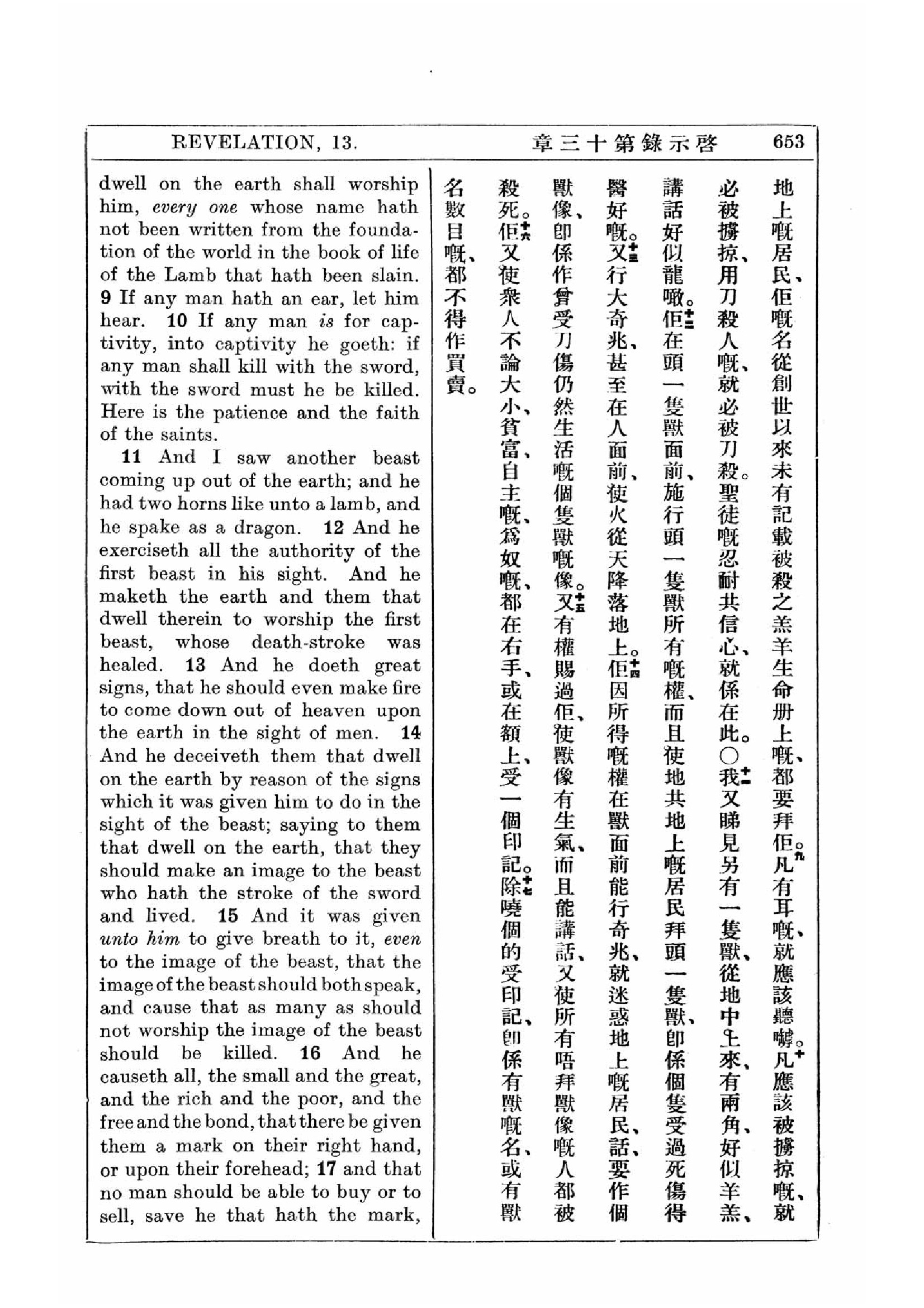 1927年新约全书(中英对照) 启示录 13 章 8 节到 13 章 17 节