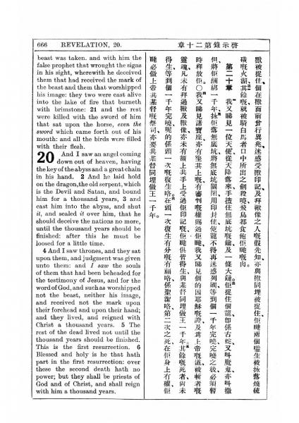 1927年新约全书(中英对照) 启示录 19 章 20 节到 20 章 6 节