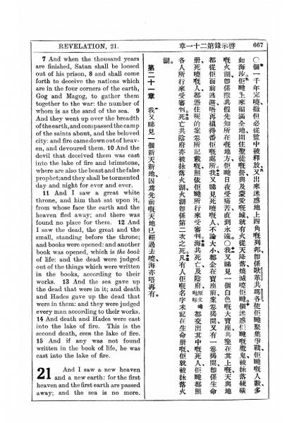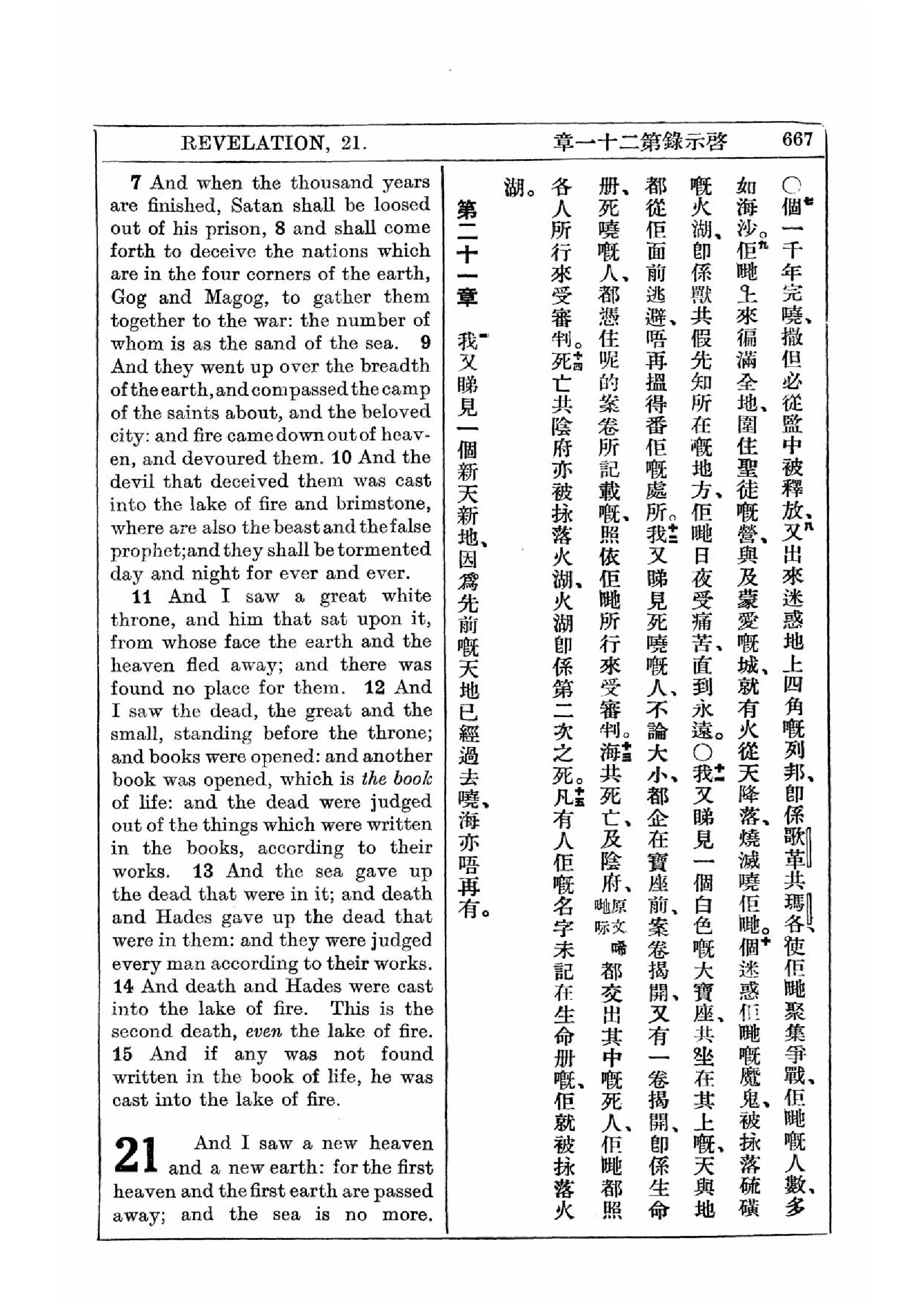 1927年新约全书(中英对照) 启示录 20 章 7 节到 21 章 1 节