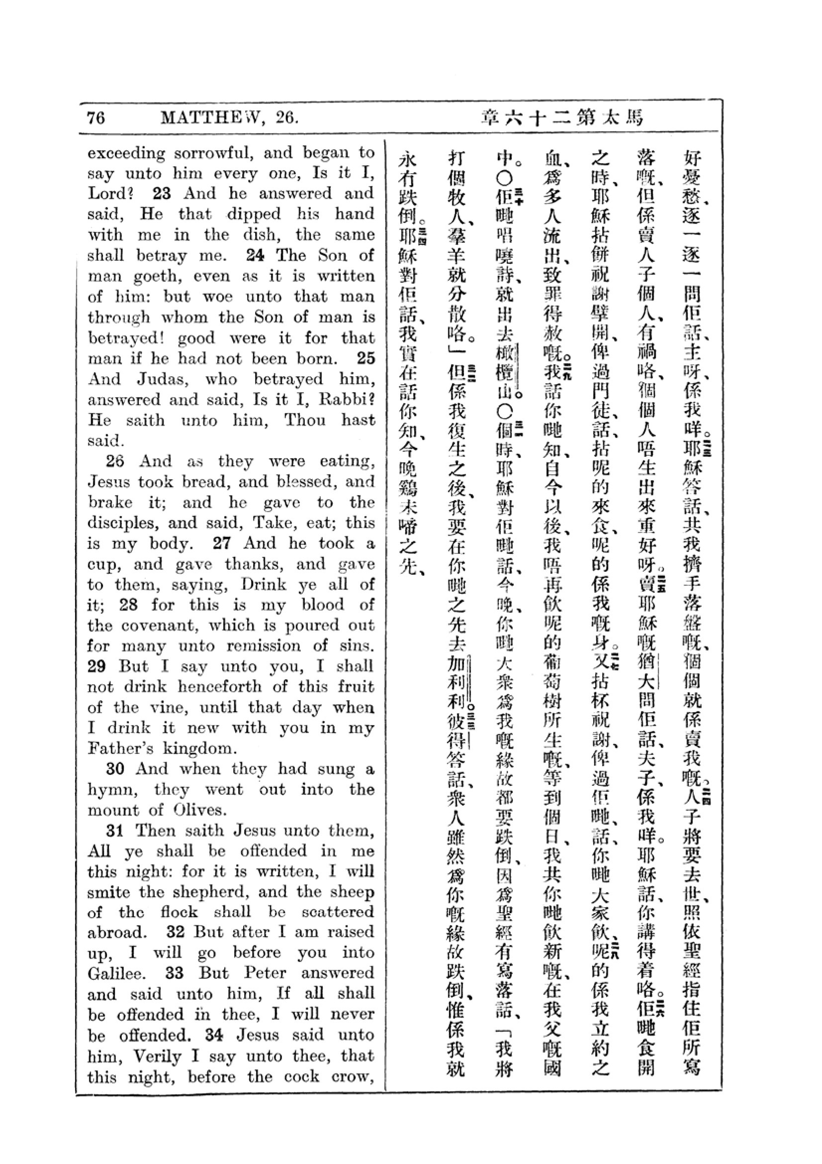 1927年新约全书(中英对照) 马太福音 26 章 23 节到 26 章 34 节
