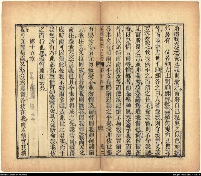 1826年我等救世主耶稣新遗诏书(新约全书) 约翰福音 14 章 21 节到 15 章 2 节