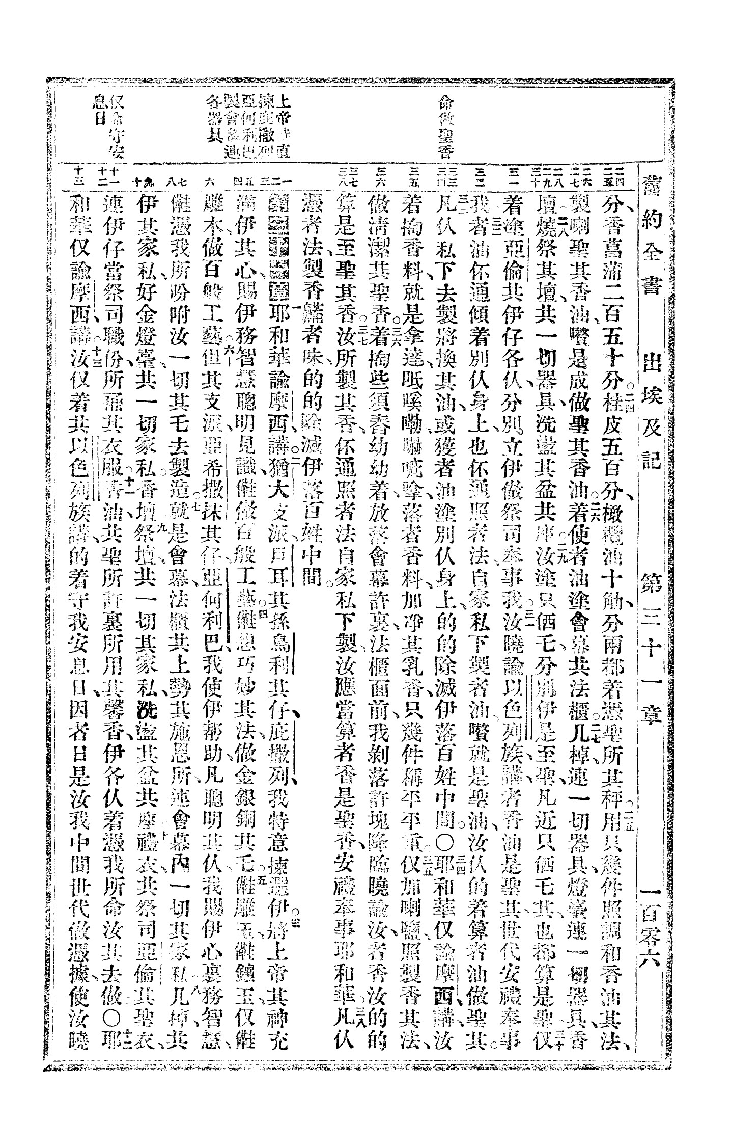 1940年福州土白《新旧约全书》 出埃及记 30 章 24 节到 31 章 13 节