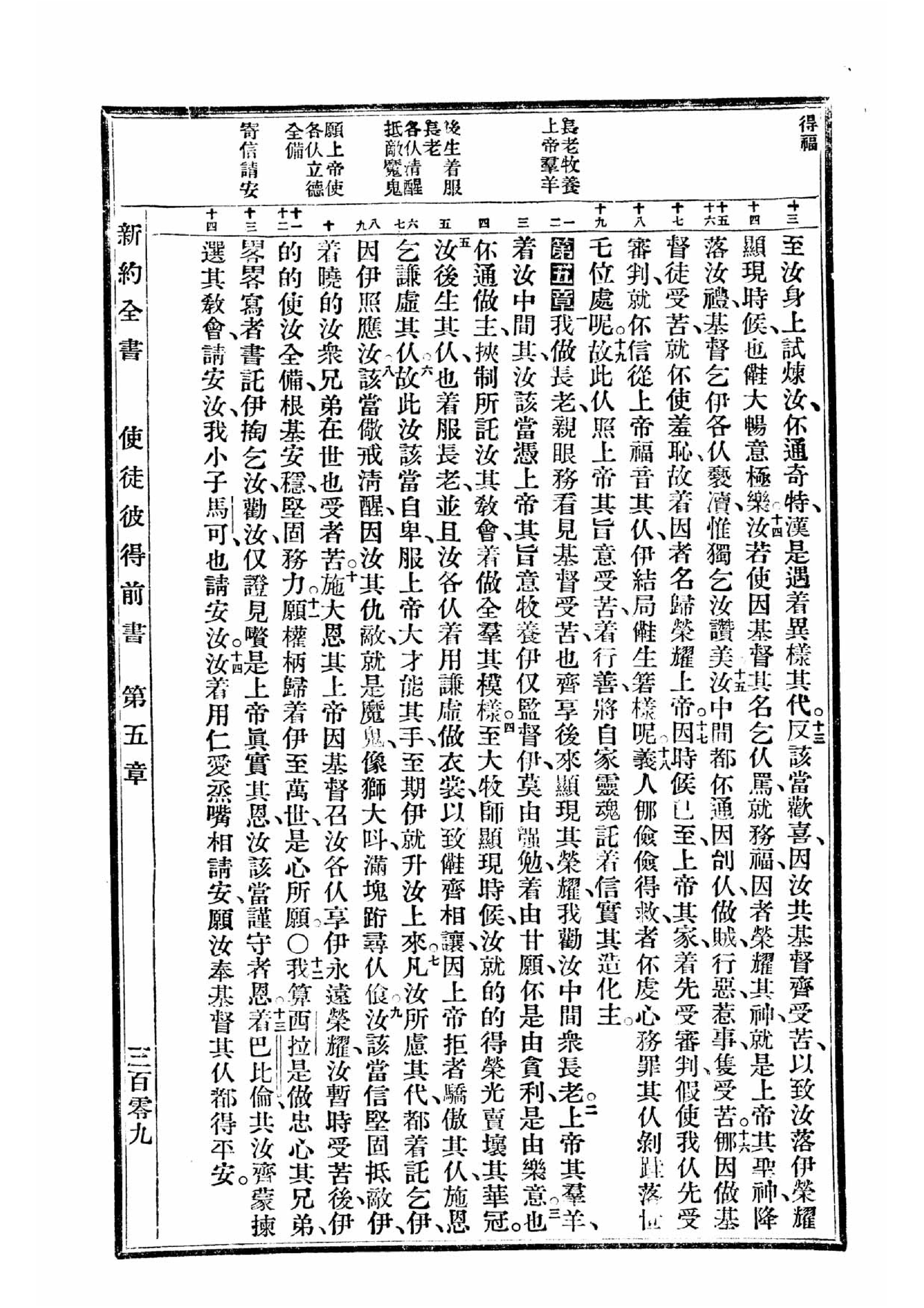 1940年福州土白《新旧约全书》 彼得前书 4 章 13 节到 5 章 14 节