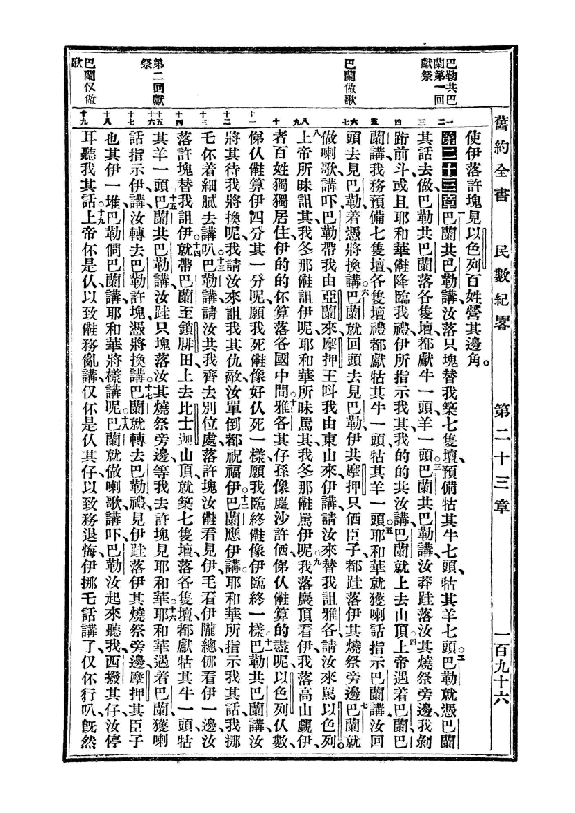 1940年福州土白《新旧约全书》 民数记 23 章 1 节到 23 章 19 节