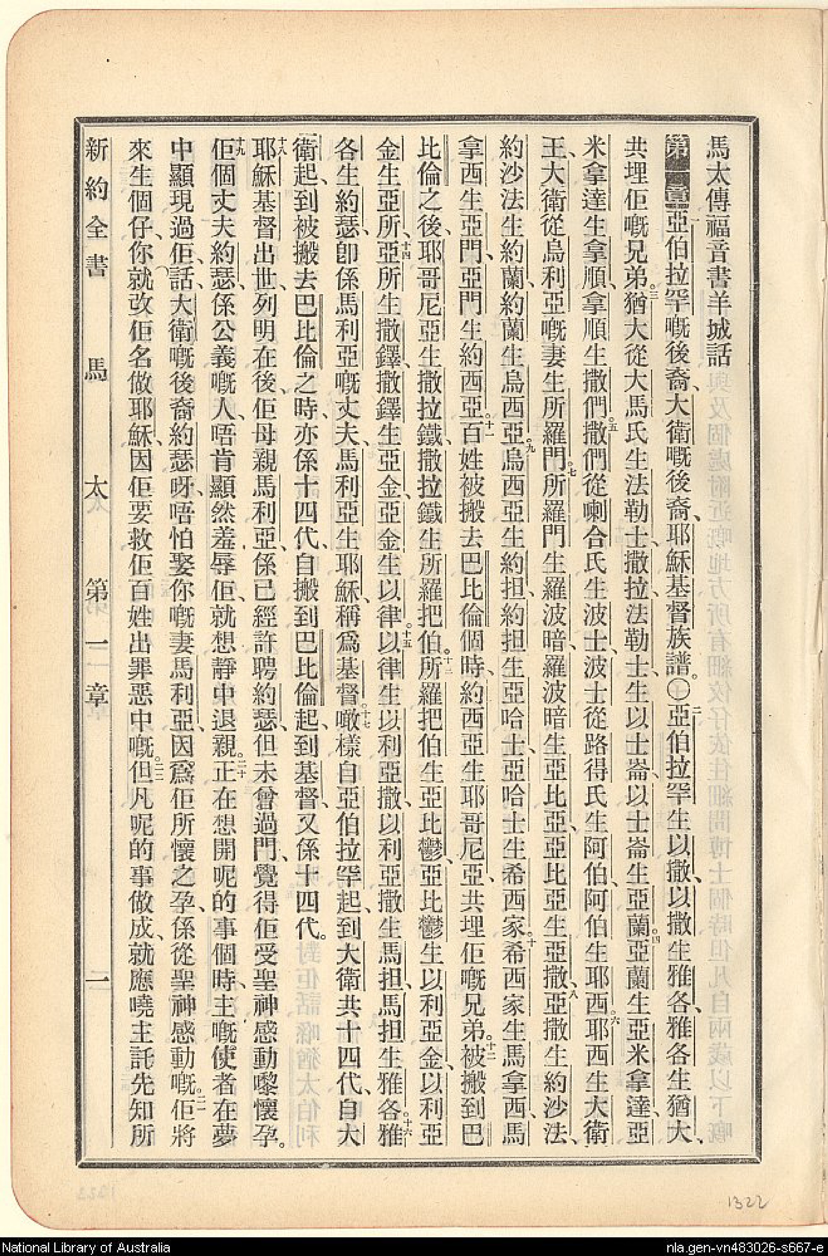 1907年新旧约全书 马太福音 1 章 1 节到 1 章 22 节