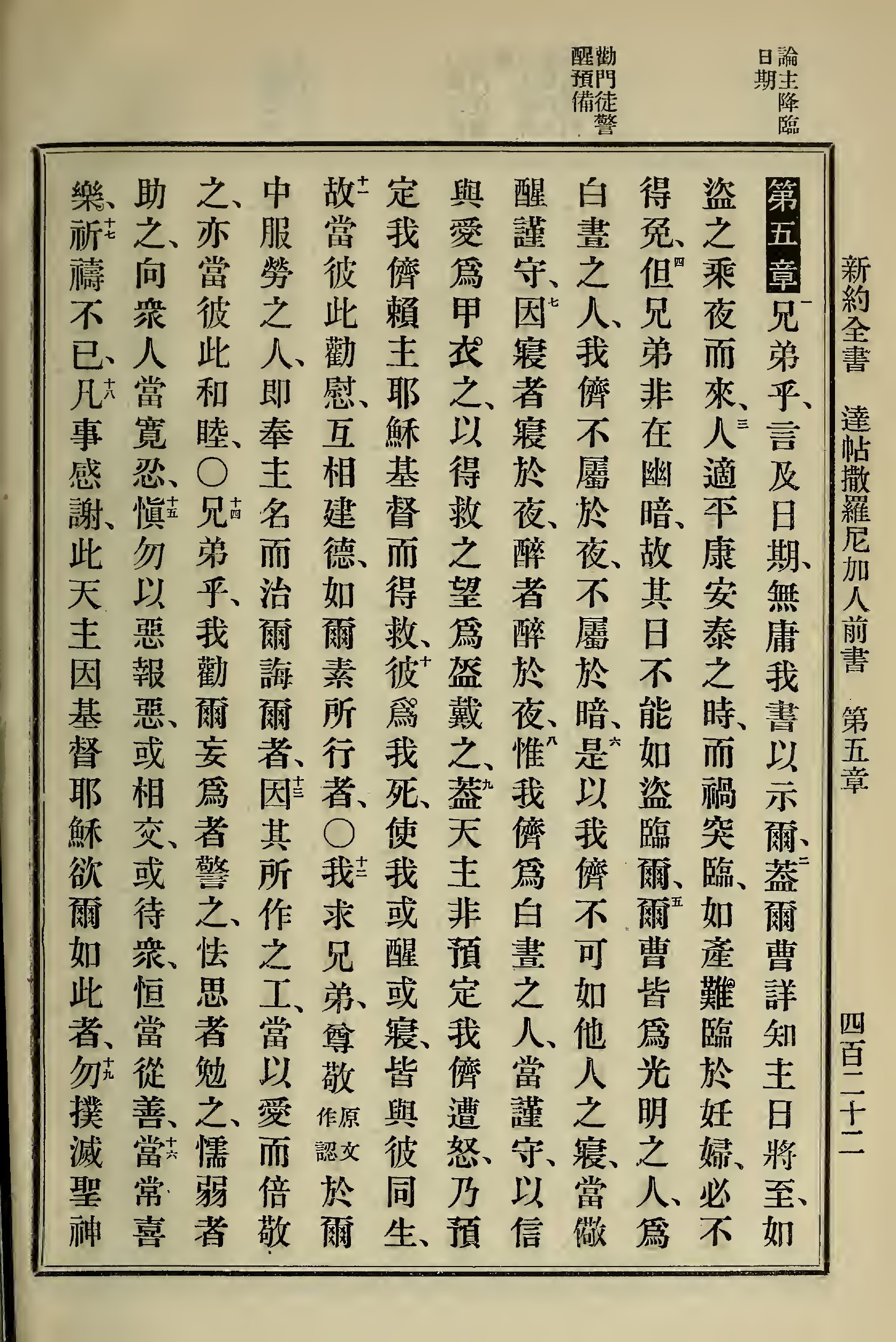 1898年新约全书 帖撒罗尼迦前书 5 章 1 节到 5 章 19 节