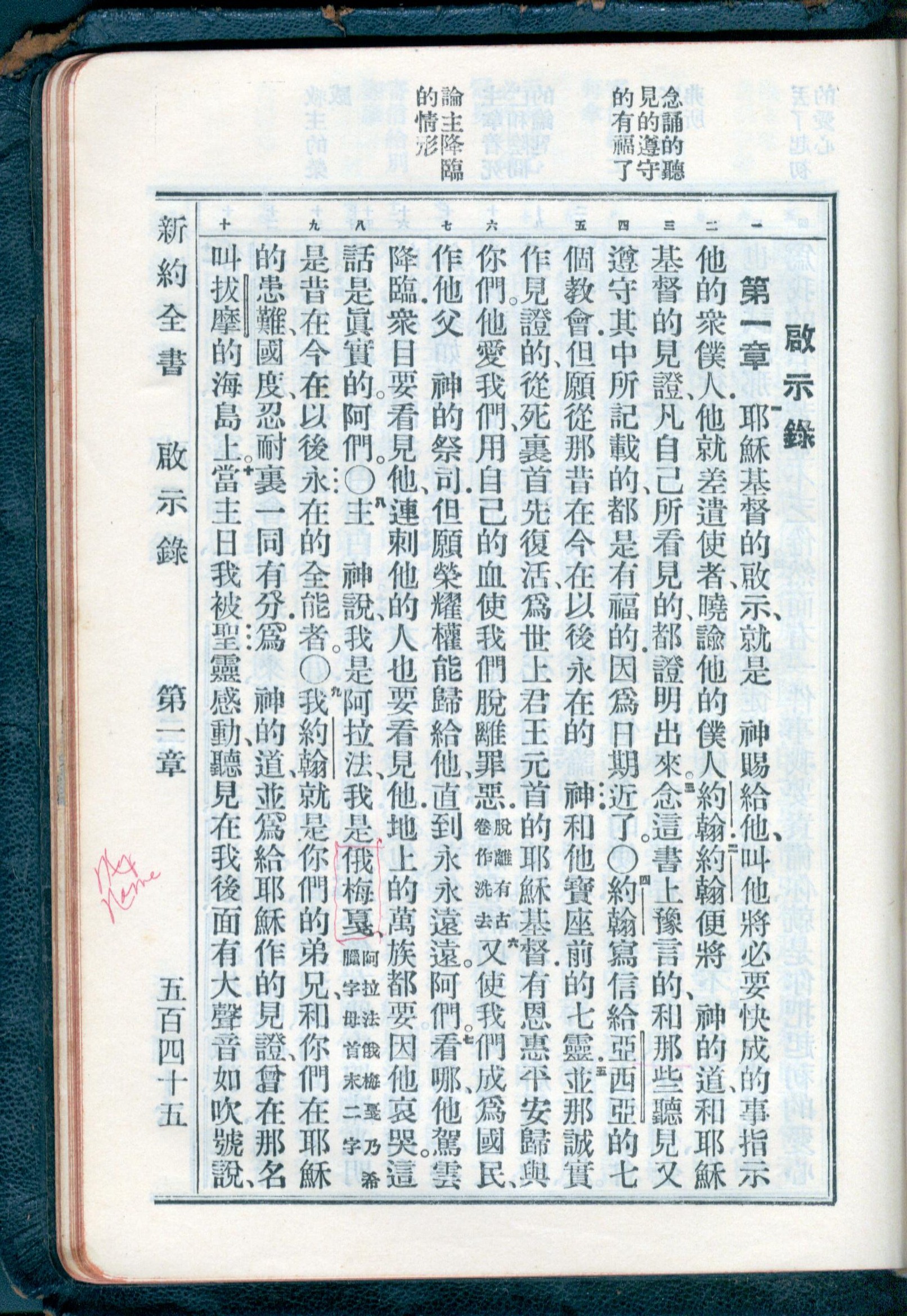 1934年新约全书(官话和合本) 启示录 1 章 1 节到 1 章 10 节