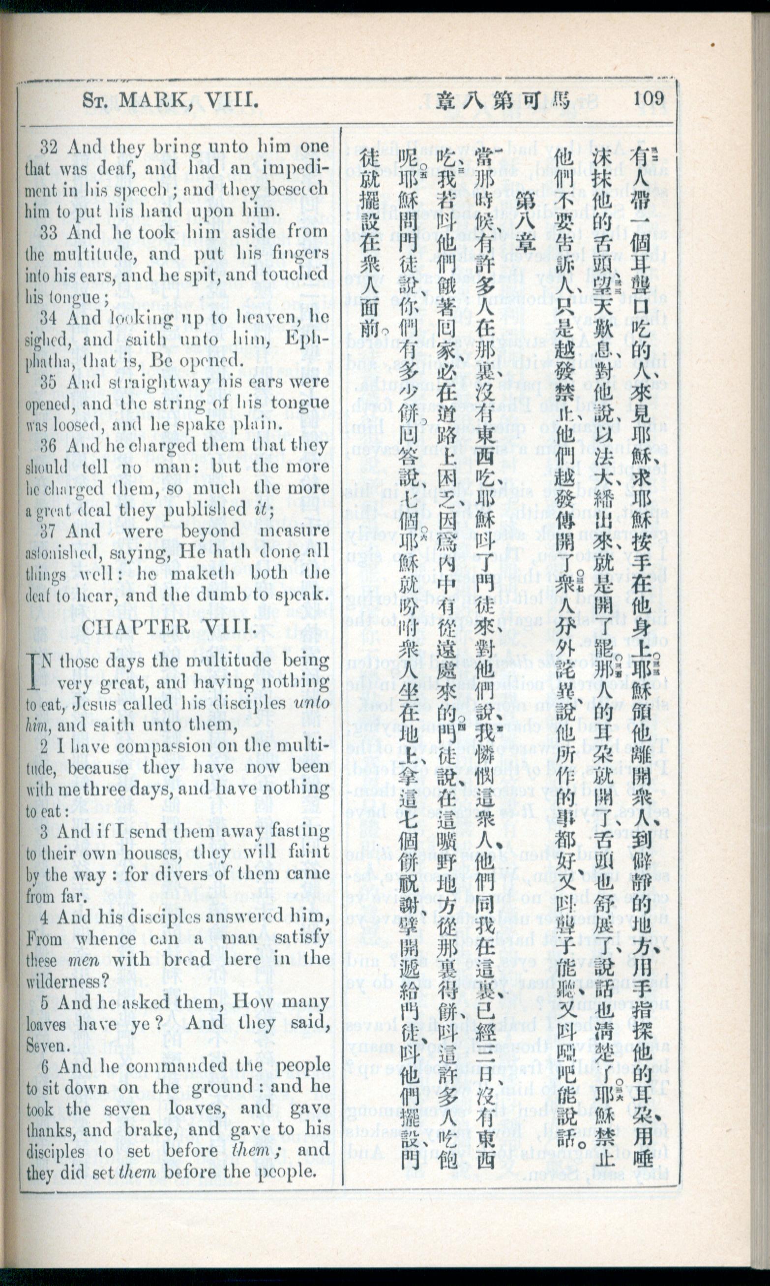 1908年新约全书(中西字) 马可福音 7 章 32 节到 8 章 6 节