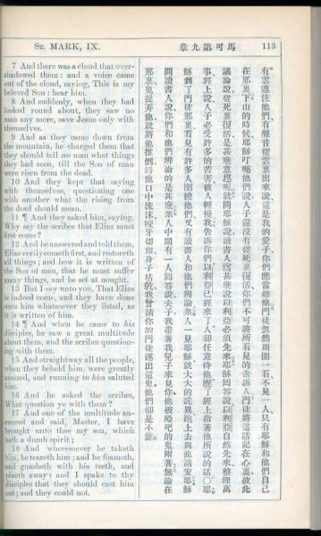 1908年新约全书(中西字) 马可福音 9 章 7 节到 9 章 18 节
