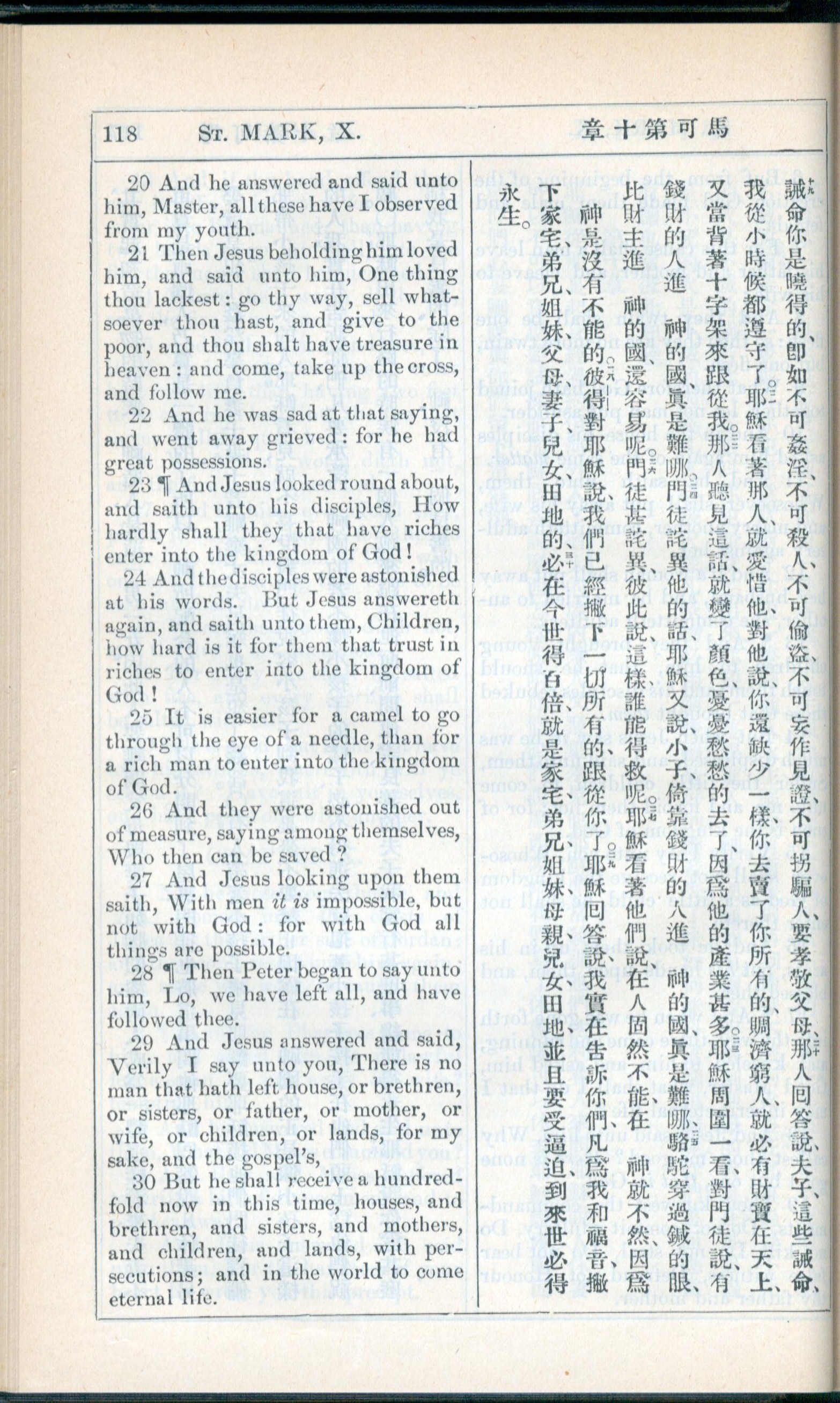 1908年新约全书(中西字) 马可福音 10 章 20 节到 10 章 30 节