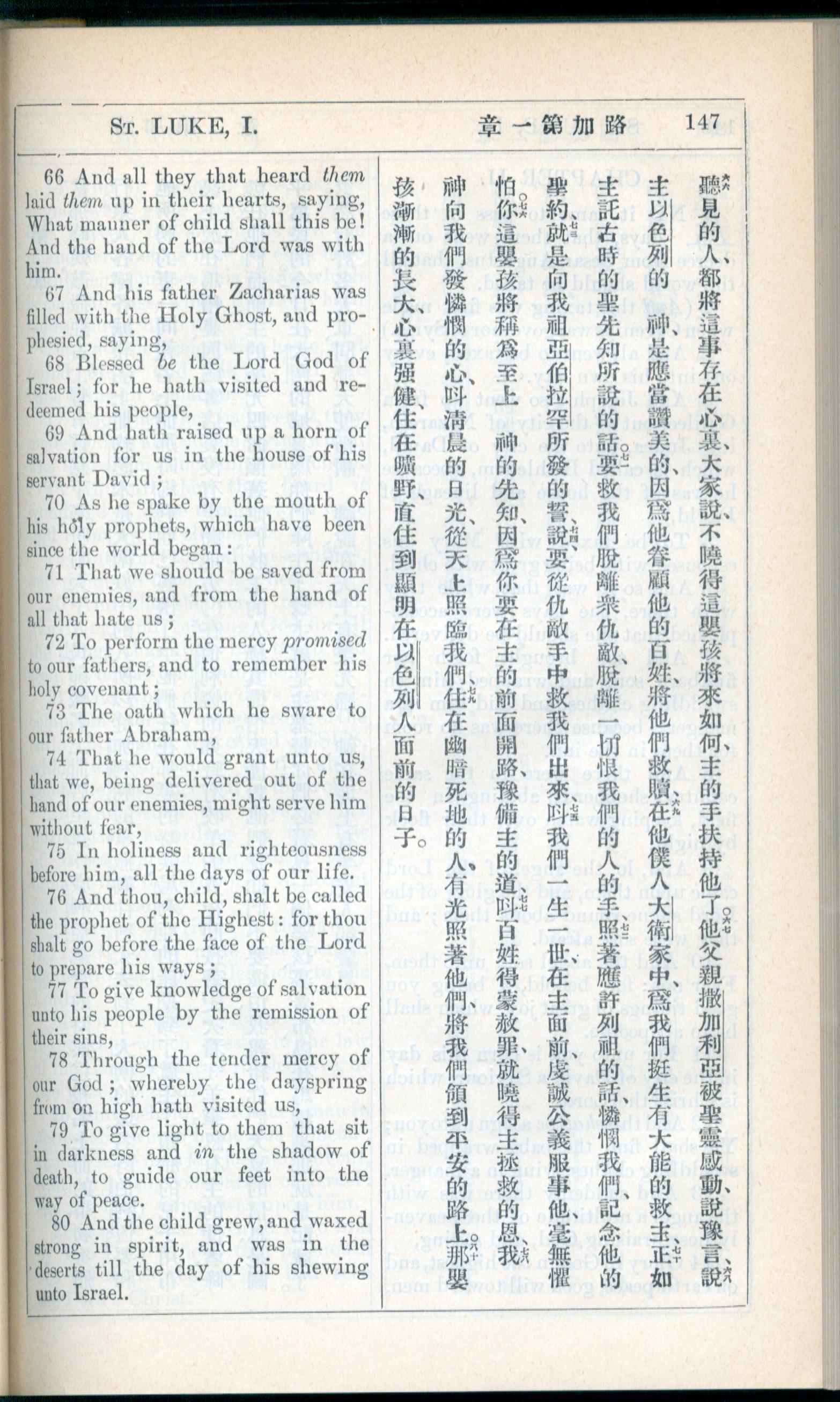 1908年新约全书(中西字) 路加福音 1 章 66 节到 1 章 80 节