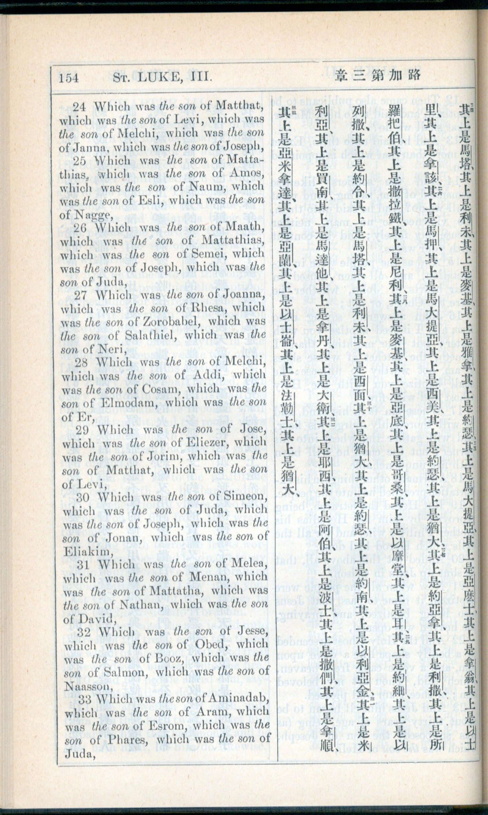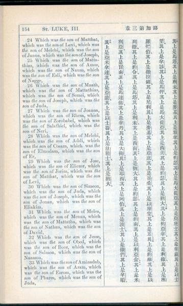 1908年新约全书(中西字) 路加福音 3 章 24 节到 3 章 33 节