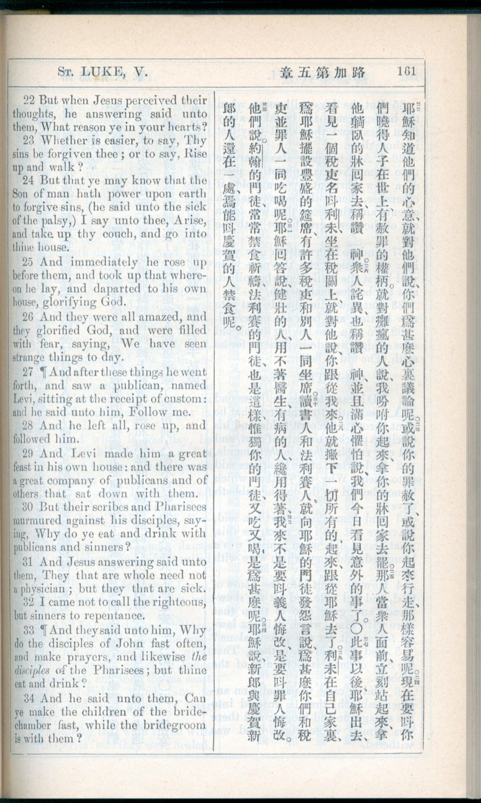1908年新约全书(中西字) 路加福音 5 章 22 节到 5 章 34 节
