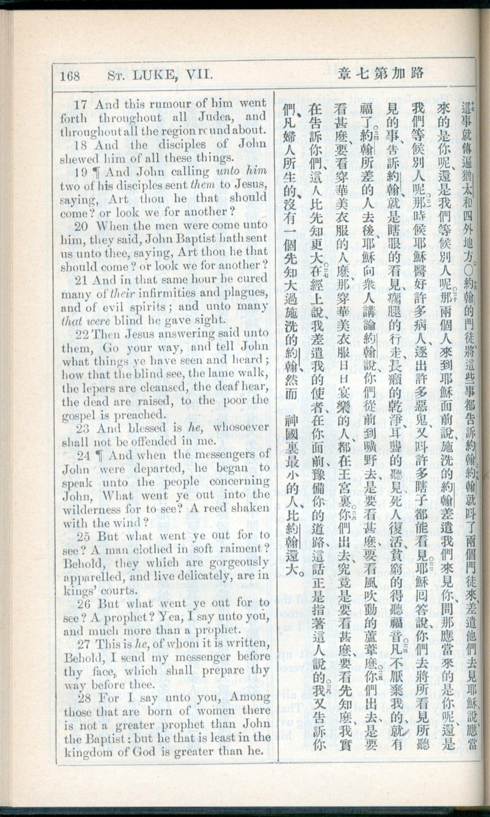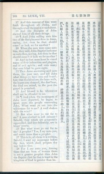 1908年新约全书(中西字) 路加福音 7 章 17 节到 7 章 28 节