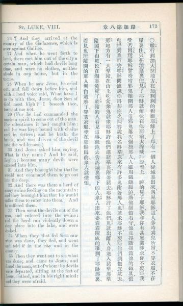 1908年新约全书(中西字) 路加福音 8 章 26 节到 8 章 35 节