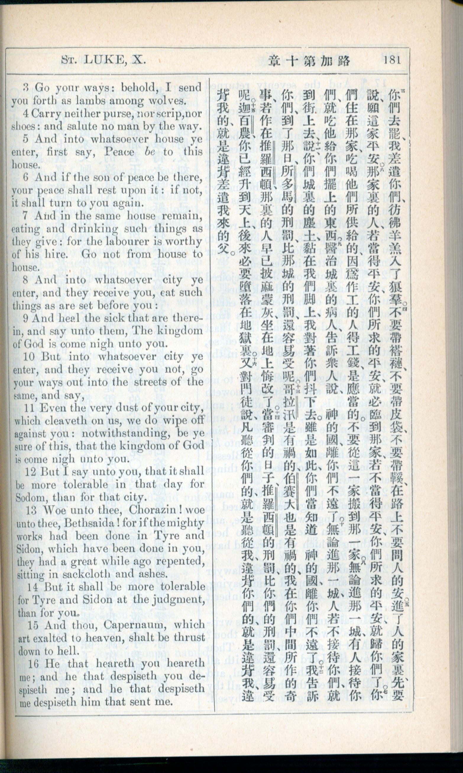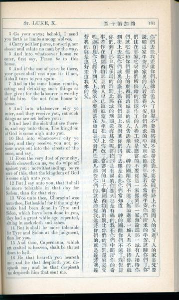 1908年新约全书(中西字) 路加福音 10 章 3 节到 10 章 16 节